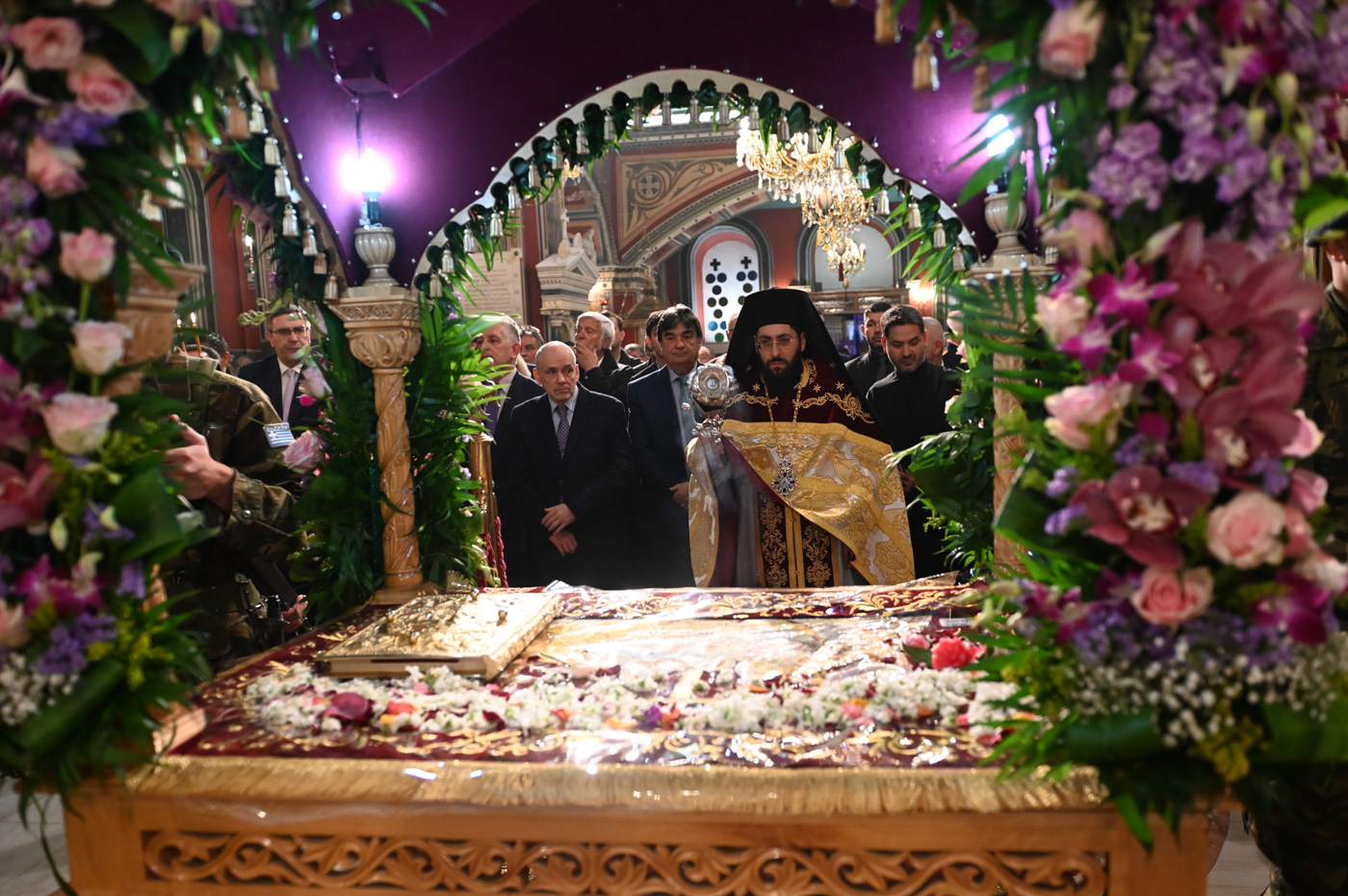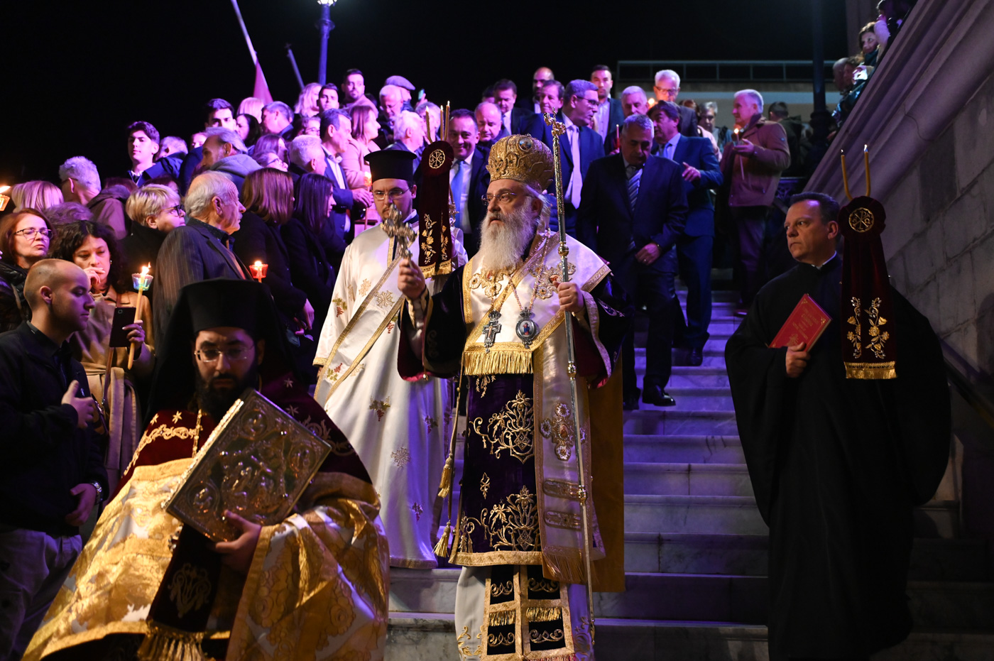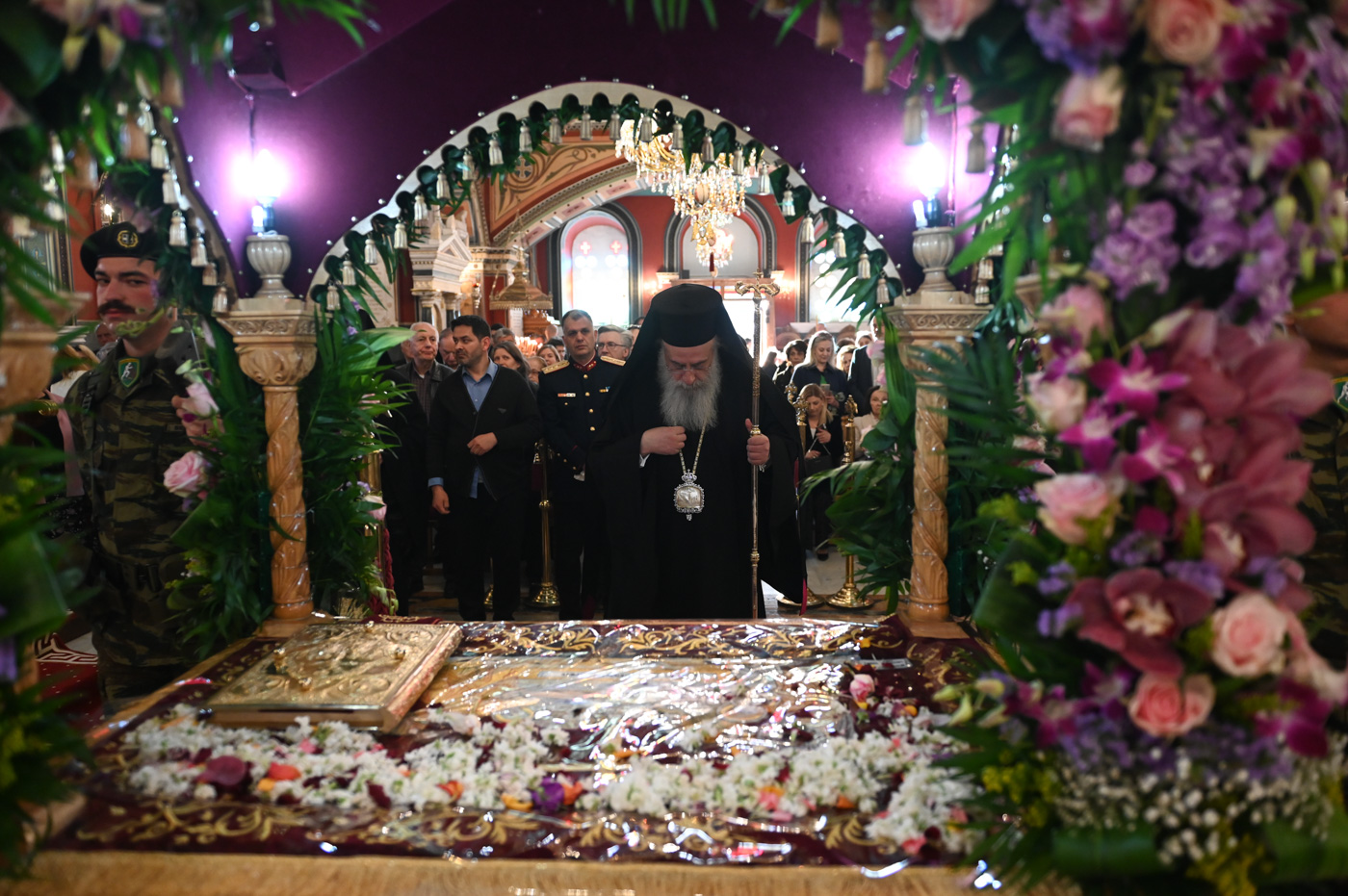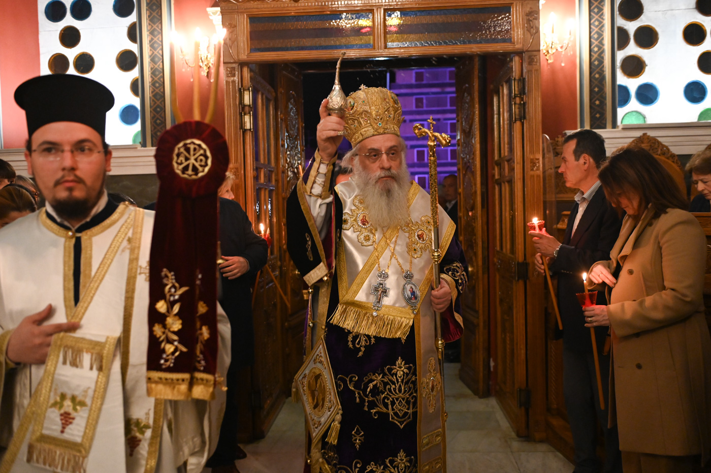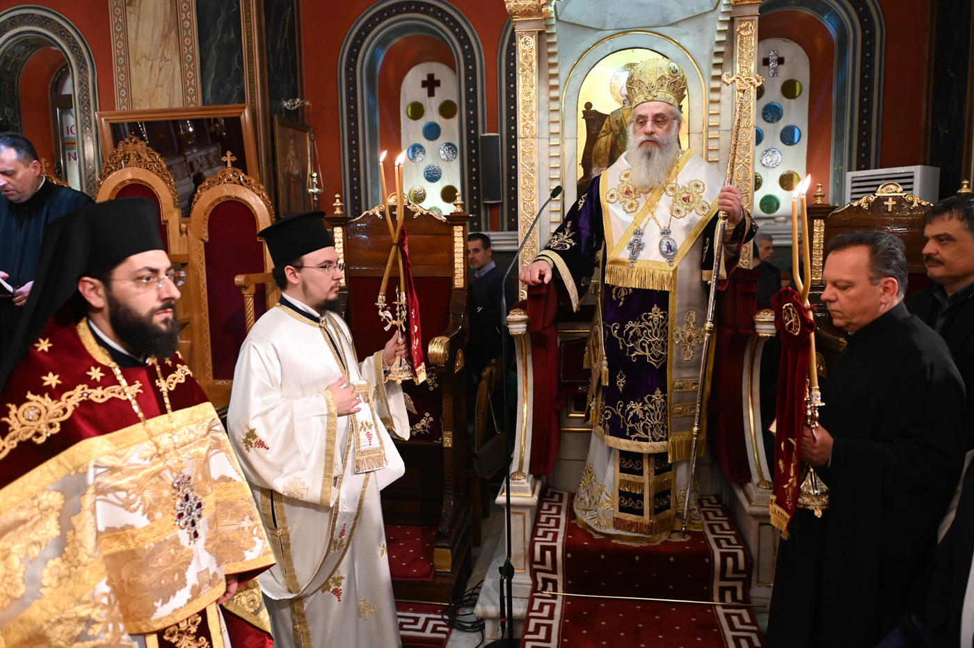 Στην Ακολουθία χοροστάτησε ο Σεβασμιώτατος Μητροπολίτης Μαντινείας και Κυνουρίας κ. Επιφάνιος, πλαισιούμενος από τον Πρωτοσύγκελλο της Μητροπόλεως Πανοσιολ. Αρχιμ. Στέφανο Καππέ και τον Διάκονο π. Αλέξιο Ζαρζάνη.