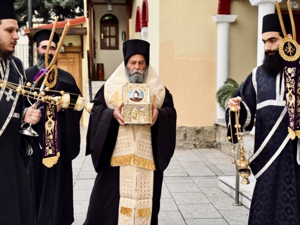 Της Ιεράς Ακολουθίας, προηγήθηκε η υποδοχή της Τιμίας Κάρας του Αγίου Νεομάρτυρος Γεώργιου του εν Ιωαννίνοις, την οποία κόμισε ο Σεβασμιώτατος Μητροπολίτης Ιωαννίνων κ. Μάξιμος.