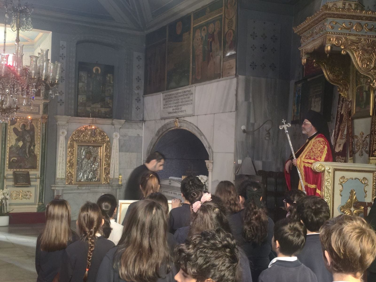 Εκκλησιάστηκαν ο Επίσκοπος Αλικαρνασσού κ. Αδριανός, Επόπτης της Περιφέρειας Φαναρίου-Κερατίου Κόλπου, ο Αρχιμανδρίτης Συμεών Αυγουστάκης, κληρικός της Μητρόπολης Ιλίου, Αχαρνών και Πετρουπόλεως, ο Αντιδήμαρχος Πολιτισμού του Δήμου Ιλίου κ. Γιώργος Φραγκάκης, η Συντονίστρια Εκπαίδευσης του Γεν. Προξενείου της Ελλάδας στην Πόλη Ελλογ. κ. Δήμητρα Βουρδόγλου, δάσκαλοι, μαθητές και μαθήτριες του Ζαππείου Δημοτικού, υπό την ηγεσία της Διευθύντριας κας. Ευαγγελίας Κανάρη, και πιστοί από την Πόλη και το εξωτερικό.