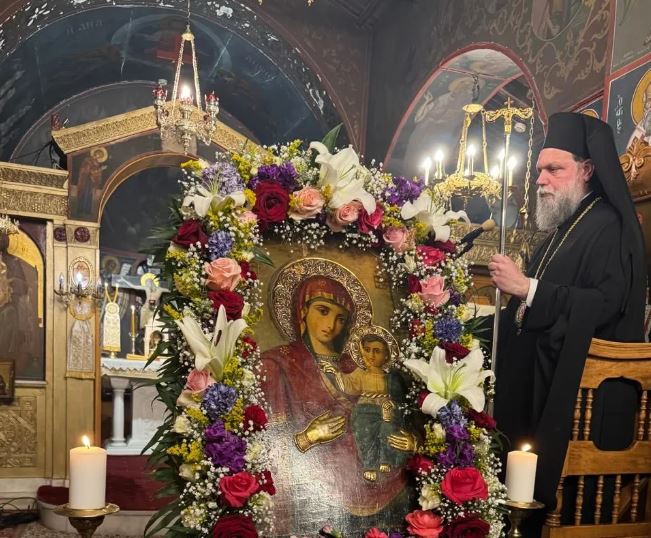 Τόνισε δε ότι η Υπεραγία Θεοτόκος εμπνέει τον πνευματικό αγώνα και ενδυναμώνει την πίστη των πιστών, προτρέποντας όλους να αποδεικνύουμε την ειλικρινή πίστη μας στον Θεό όχι μόνο με λόγια, αλλά κυρίως με πράξεις αγάπης προς τον συνάνθρωπο.