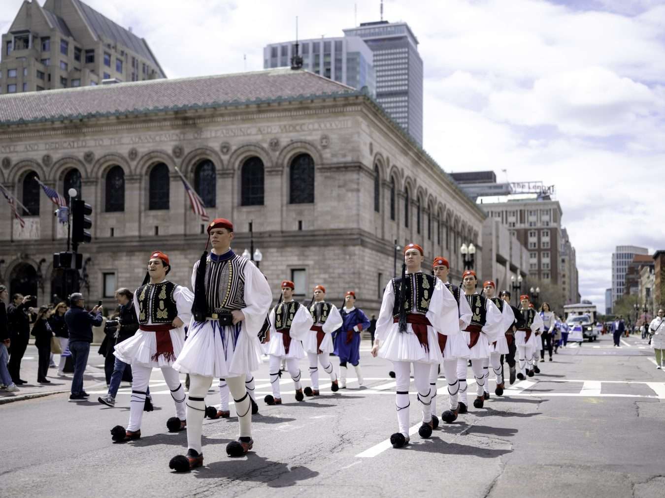 Η πομπή της παρέλασης θα ανοίξει με το τιμητικό άγημα της Αστυνομίας της Βοστώνης και τους στρατιωτικούς φρουρούς που θα φέρουν τη σημαία των Ηνωμένων Πολιτειών, ενώ παράλληλα οι Καρυάτιδες θα παρουσιάσουν την ελληνική σημαία. Ξεχωριστή θέση στην παρέλαση θα έχουν οι Εύζωνες της Προεδρικής Φρουράς της Ελλάδος, οι οποίοι θα παρελάσουν με την τελετουργική τους στολή. Θα ακολουθήσουν ελληνικοί πολιτιστικοί σύλλογοι, ενορίες, φοιτητικές ομάδες και κοινοτικές οργανώσεις από ολόκληρη τη Νέα Αγγλία.
