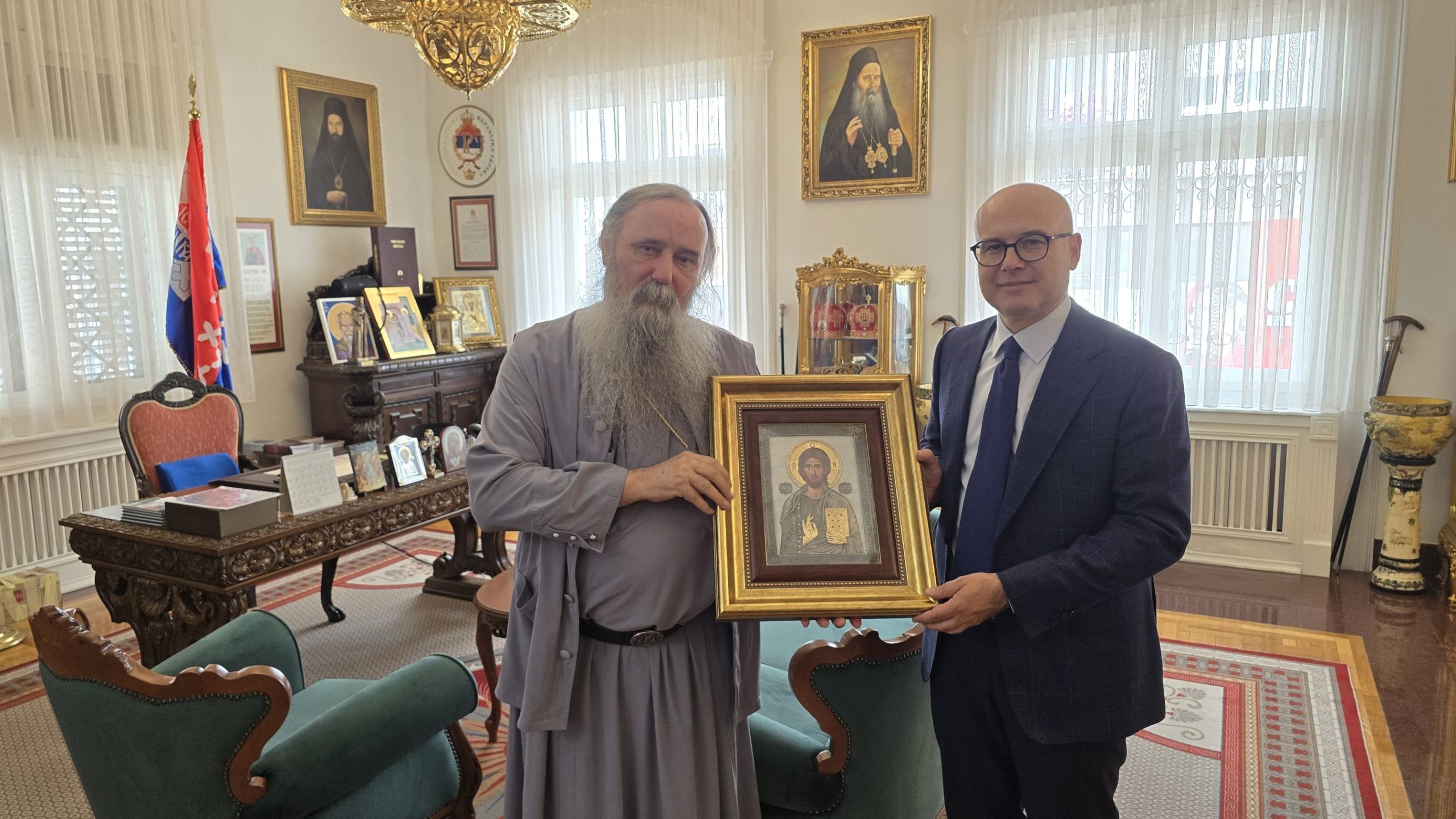Ως ένδειξη προσευχητικής ανάμνησης αυτής της συνάντησης, ο Μητροπολίτης Φώτιος δώρισε στον κ. Βούτσεβιτς μια εικόνα του Κυρίου Ιησού Χριστού.