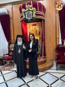 Εὐχαριστοῦσα τόν Μακαριώτατον διά τήν ἐπίσκεψιν ταύτην ἡ κ. Ὑπουργός ἀνεχώρησε δι’ ἐπίσκεψιν εἰς τόν Πανάγιον Τάφον εἰς τάς ἀρχάς τοῦ ἔτους 2025.