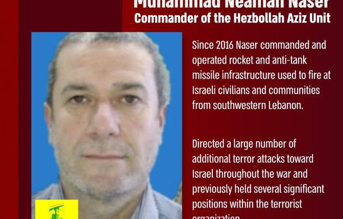 Naser entered his position in 2016 and led the rockets and anti-tank missile attacks from southwestern Lebanon toward Israeli civilians, communities and security forces.… pic.twitter.com/Uof9YEO0fy