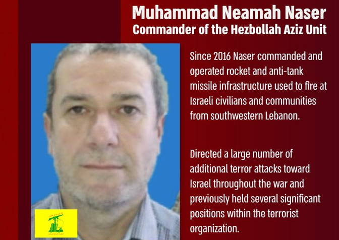 Naser entered his position in 2016 and led the rockets and anti-tank missile attacks from southwestern Lebanon toward Israeli civilians, communities and security forces.… pic.twitter.com/Uof9YEO0fy