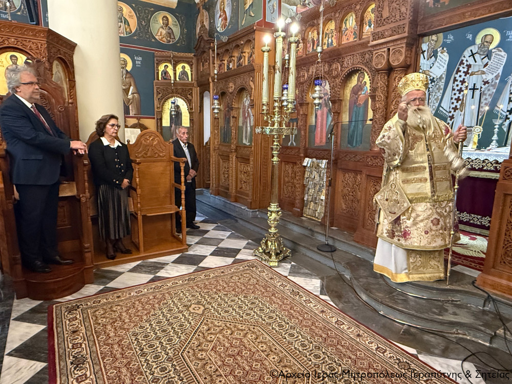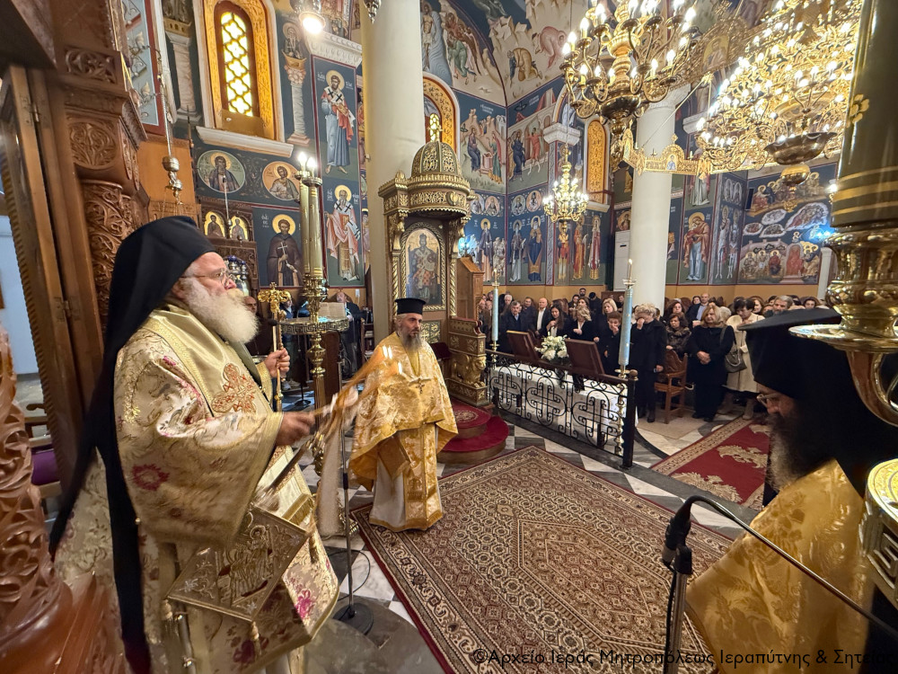 Την Β’ Κυριακή των Νηστειών (Αγίου Γρηγορίου του Παλαμά), 8 Μαρτίου 2026, ο Σεβ. Μητροπολίτης Ιεραπύτνης και Σητείας κ. Κύριλλος χοροστάτησε στην ακολουθία του Όρθρου, στη συνέχεια τέλεσε τη Θεία Λειτουργία του Μεγάλου Βασιλείου, κήρυξε επίκαιρα τον θείο λόγο στον Ιερό Καθεδρικό Ναό Αγίας Αικατερίνης πόλεως Σητείας, και πριν από την Απόλυση τέλεσε το τεσσαρακονθήμερο μνημόσυνο υπέρ αναπαύσεως της ψυχής της μακαριστής Δέσποινας Μανουσάκη, συμβολαιογράφου και υποθηκοφύλακα Σητείας.