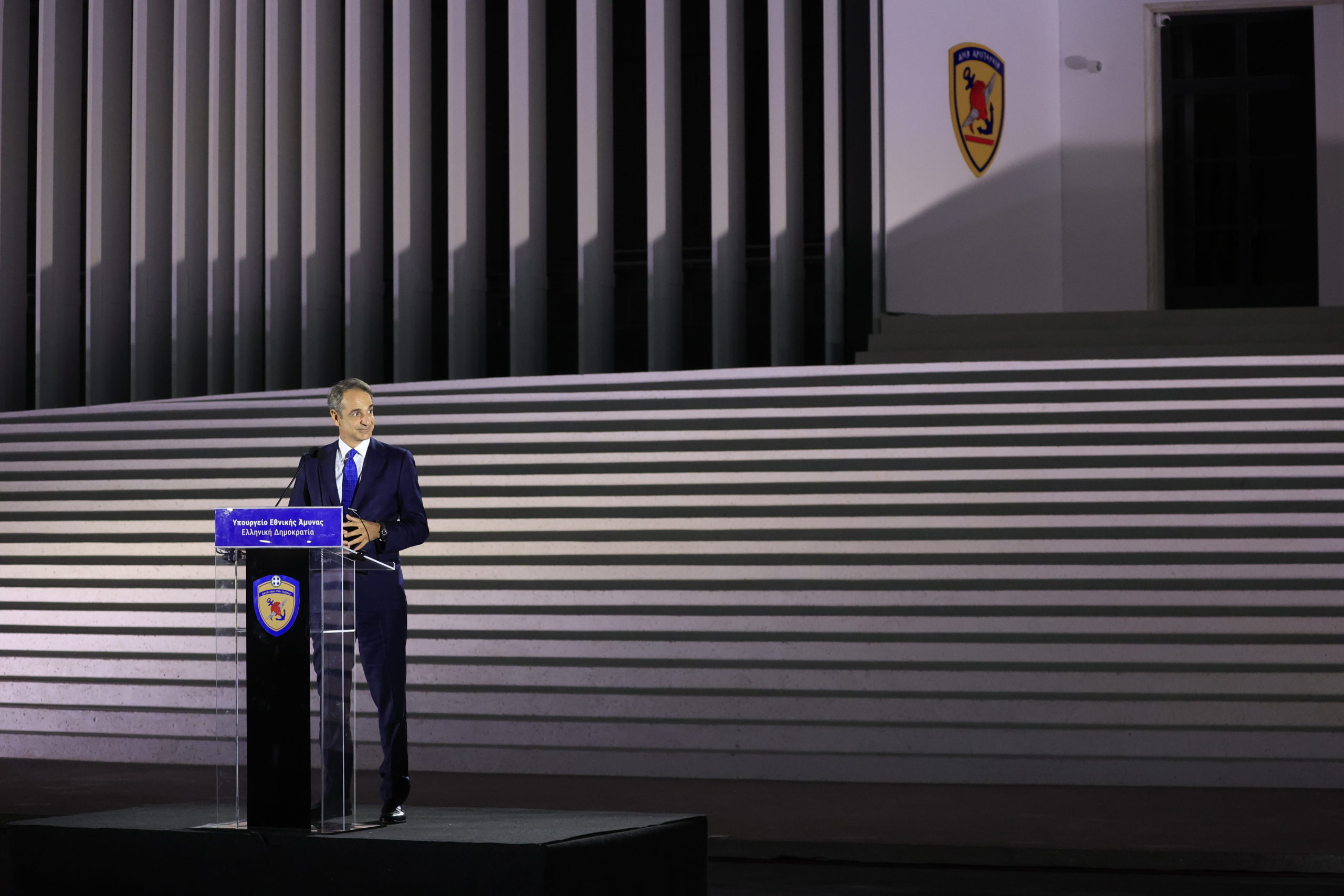Στην τελετή αποκαλυπτηρίων απηύθυναν επίσης χαιρετισμό ο Πρωθυπουργός κ. Μητσοτάκης, ο Καθηγητής κ. Βαρώτσος και ο Ταξίαρχος επί τιμή, Πρόεδρος και Διευθύνων Σύμβουλος της METLEN Energy and Metals, Ευάγγελος Μυτιληναίος.