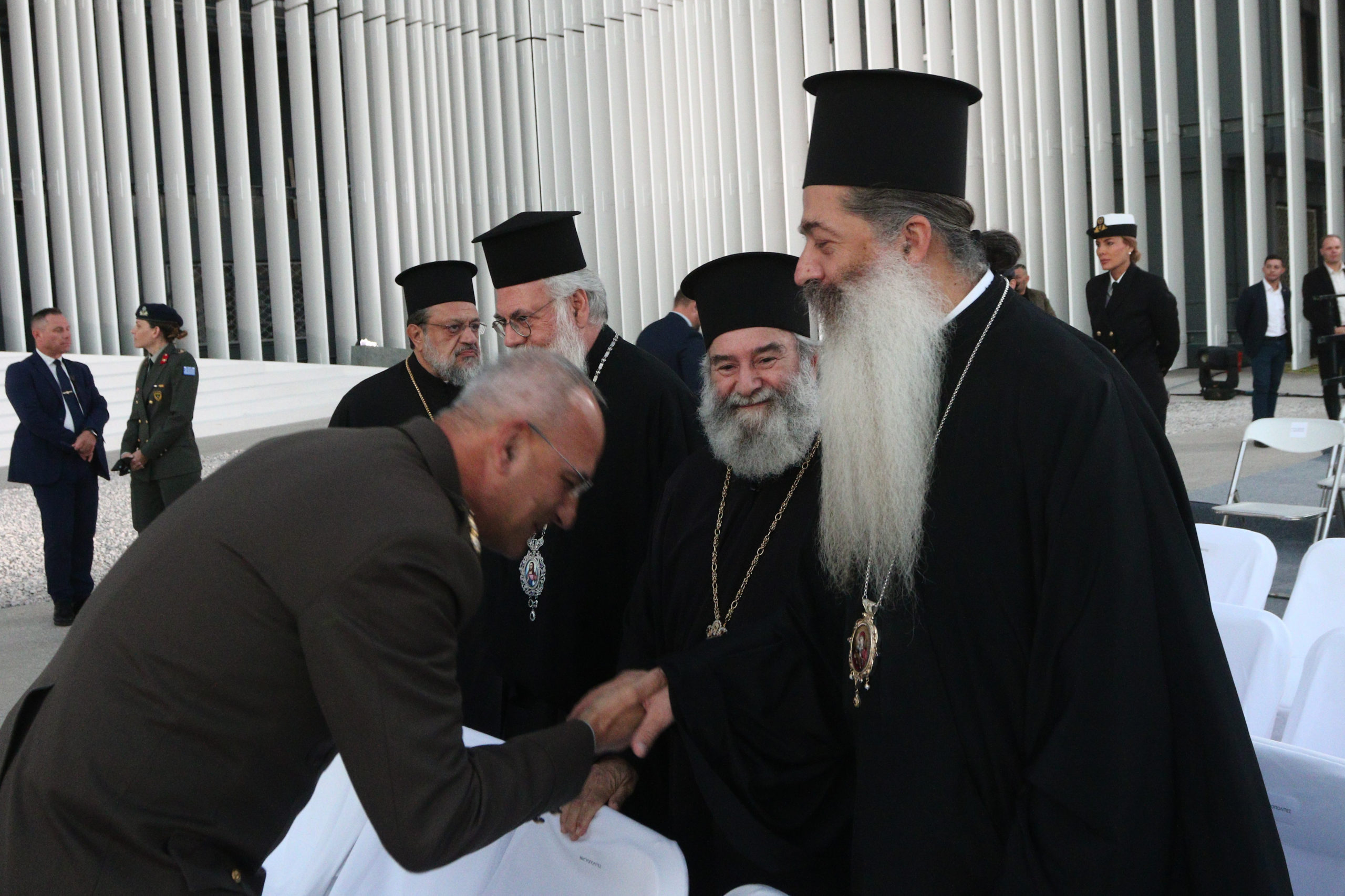 Ιεράρχες της Εκκλησίας της Ελλάδος στην τελετή αποκαλυπτηρίων της νέας βιοκλιματικής όψης του Υπουργείου Εθνικής Άμυνας