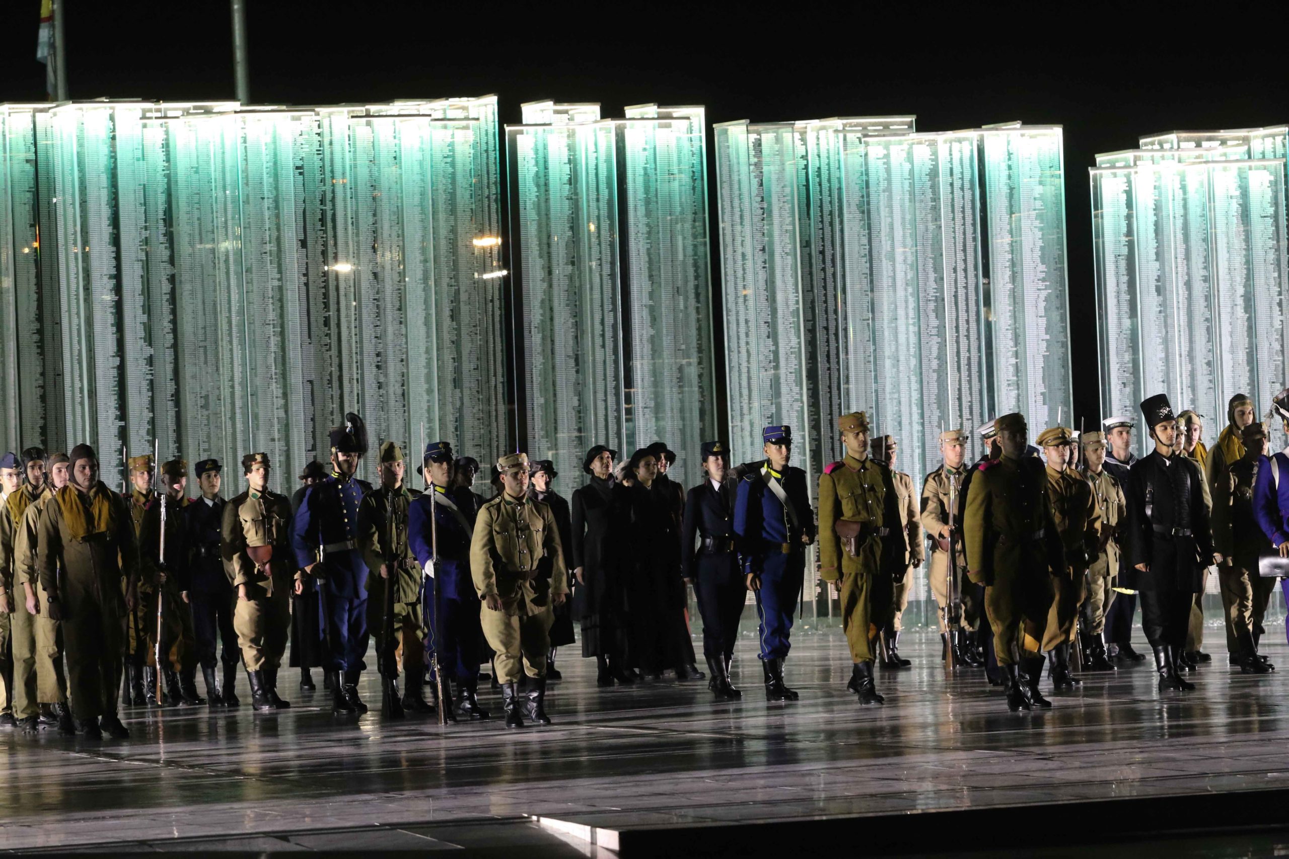 Κατά την τελετή των αποκαλυπτηρίων έλαβε χώρα δρώμενο σε σκηνοθετική επιμέλεια της Σοφίας Σπυράτου και της καλλιτεχνικής της ομάδας. Αφηγητές της εκδήλωσης ήταν η Άντζελα Γκερέκου και ο Άρης Σακελλαρίδης, με ερμηνευτές τους Μανώλη Μητσιά και Άγγελο Παπαδημητρίου, υπό τη μουσική διεύθυνση του Αρχιμουσικού Πλωτάρχη Ευστράτιου Σίτσα ΠΝ και συνοδεία τμήματος της Διακλαδικής Μπάντας των Ενόπλων Δυνάμεων. Το σενάριο και τα κείμενα είχε επιμεληθεί ο Λάμπρος Λιάβας, ενώ την ενδυματολογική επιμέλεια είχε η Ντέμη Βαλθιώτη. Στο δρώμενο συμμετείχαν και σπουδαστές της Στρατιωτικής Σχολής Ευελπίδων, της Στρατιωτικής Σχολής Ναυτικών Δοκίμων, της Σχολής Ικάρων και της Σχολής Ναυτικών Αξιωματικών.