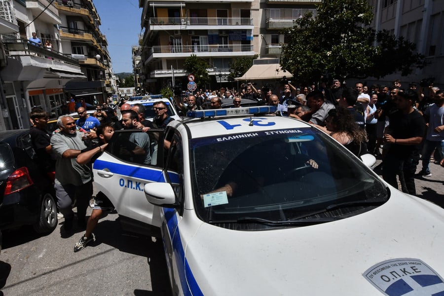 Οι λίγοι αστυνομικοί δεν μπορούσαν να συγκρατήσουν τους οργισμένους συγγενείς, οι οποίοι μάλιστα κατάφεραν να ανοίξουν και την πόρτα του περιπολικού.