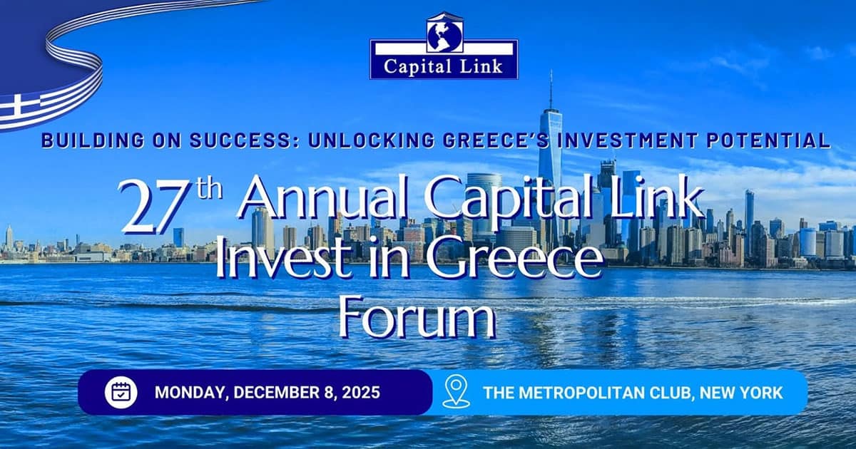 Με το μήνυμα ότι η Ελλάδα δεν αποτελεί πια μελέτη κρίσης, αλλά ιστορία ισχυρής ανάκαμψης και ώριμο επενδυτικό προορισμό, ολοκληρώθηκε με επιτυχία το 27ο Ετήσιο Capital Link Invest in Greece Forum, στο Μανχάταν της Νέας Υόρκης, προσελκύοντας την προσοχή της διεθνούς επενδυτικής κοινότητας. Πρόκειται για μία από τις σημαντικότερες διεθνείς εκδηλώσεις για την ελληνική οικονομία που γίνεται στις ΗΠΑ.