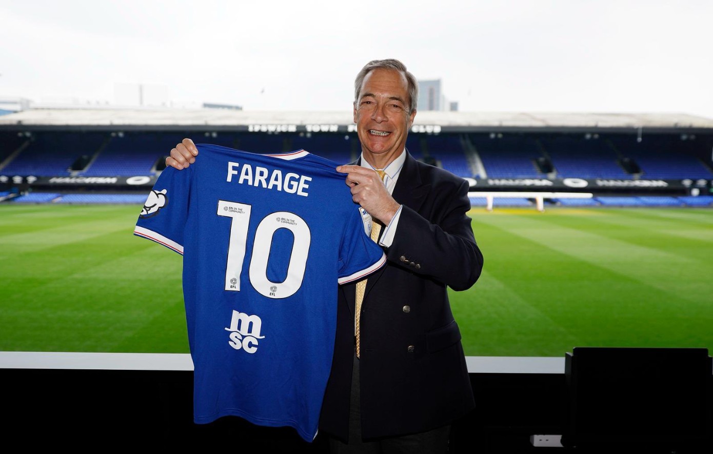 Ο ηγέτης του κόμματος Reform UK, το οποίο κινείται προς την άκρα δεξιά, είναι οπαδός της Κρίσταλ Πάλας, παρ’ όλα αυτά επισκέφθηκε το γήπεδο της Ίπσουιτς για μι ιδιωτική ξενάγηση, με τον ίδιο να το απολαμβάνει.