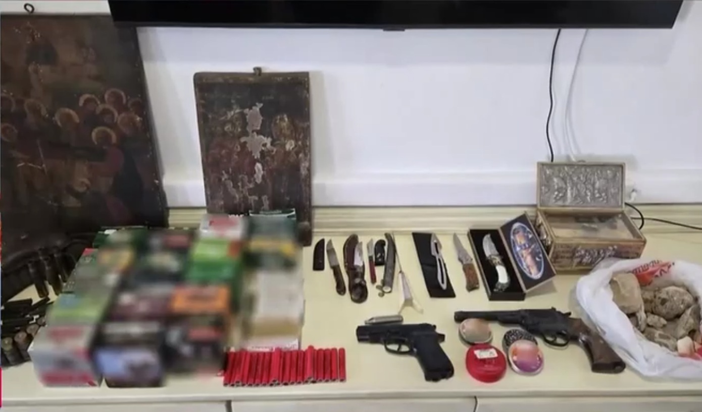 Κατά τις έρευνες σε χώρους που χρησιμοποιούσε στο Ηράκλειο, εντοπίστηκε και κατασχέθηκε μεγάλος αριθμός όπλων, πυρομαχικών και άλλων αντικειμένων.