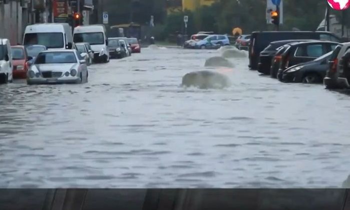 Ειδικότερα το Μιλάνο έχει βυθιστεί στο νερό και οι δρόμοι του έχουν μετατραπεί σε ποτάμια.