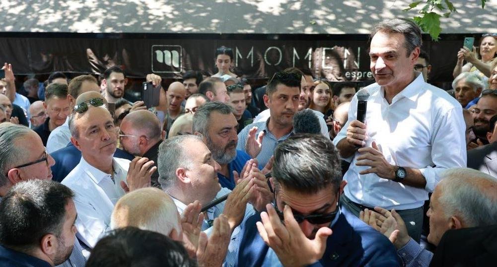 Στην πλατεία ο κ. Μητσοτάκης περπάτησε, συνομίλησε με πολίτες σε καφέ. Μόλις πήρε τον λόγο ευχαρίστησε τους συγκεντρωμένους για την υποδοχή και σχολίασε: