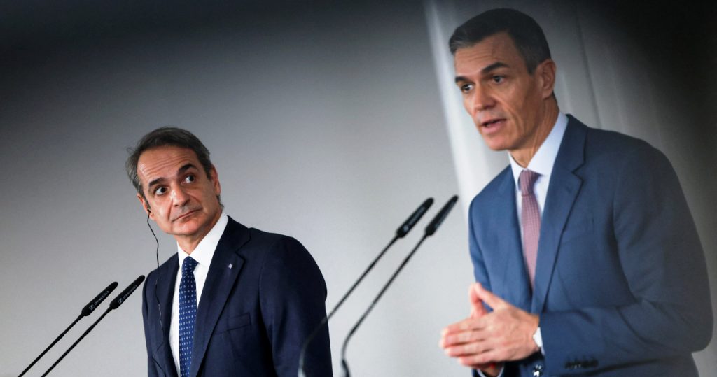 Στη Μαδρίτη σήμερα, ο Έλληνας πρωθυπουργός Κυριάκος Μητσοτάκης συναντήθηκε με τον Ισπανό ομόλογό του Πέδρο Σάντσεθ, πραγματοποιώντας κοινές δηλώσεις που υπογραμμίζουν τη σημασία της διμερούς συνεργασίας. Οι ηγέτες αναφέρθηκαν σε κρίσιμα ζητήματα, όπως η ενίσχυση των οικονομικών σχέσεων, η αντιμετώπιση του μεταναστευτικού και οι προκλήσεις που αντιμετωπίζουν οι χώρες του ευρωπαϊκού νότου.
