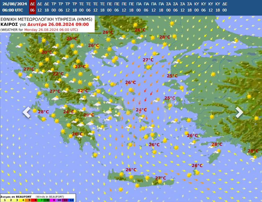 ΠΡΟΓΝΩΣΗ ΓΙΑ ΣΗΜΕΡΑ ΔΕΥΤΕΡΑ 26-08-2024