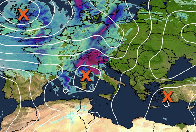 Όπως σημειώνει, βαρομετρικό χαμηλό από την περιοχή της Ιταλίας αναμένεται να κινηθεί ανατολικά – βορειοανατολικά προκαλώντας το Σαββατοκύριακο τα εξής φαινόμενα: