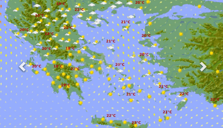 Θερμοκρασία: Από 15 έως 27 και στην Κρήτη έως 30 βαθμούς Κελσίου.