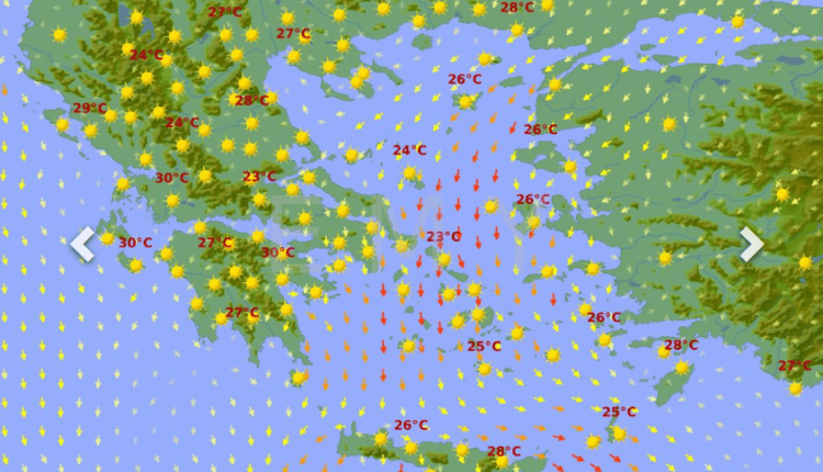 Θερμοκρασία: Από 22 έως 33 βαθμούς και στη νότια Κρήτη έως 34 με 35 βαθμούς Κελσίου.