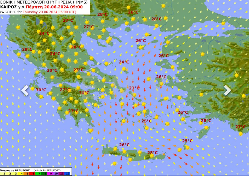 ΠΡΟΓΝΩΣΗ ΓΙΑ ΣΗΜΕΡΑ ΠΕΜΠΤΗ 20-06-2024