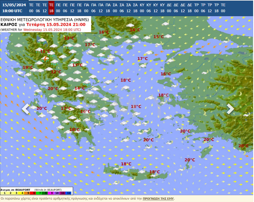 ΠΡΟΓΝΩΣΗ ΓΙΑ ΣΗΜΕΡΑ ΤΕΤΑΡΤΗ 15-05-2024