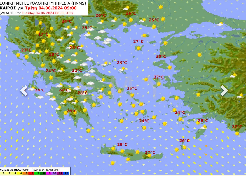 ΠΡΟΓΝΩΣΗ ΓΙΑ ΣΗΜΕΡΑ ΤΡΙΤΗ 04-06-2024