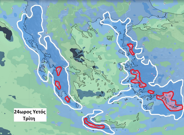 -Στο βορειοανατολικό και ανατολικό Αιγαίο έως και τα Δωδεκάνησα