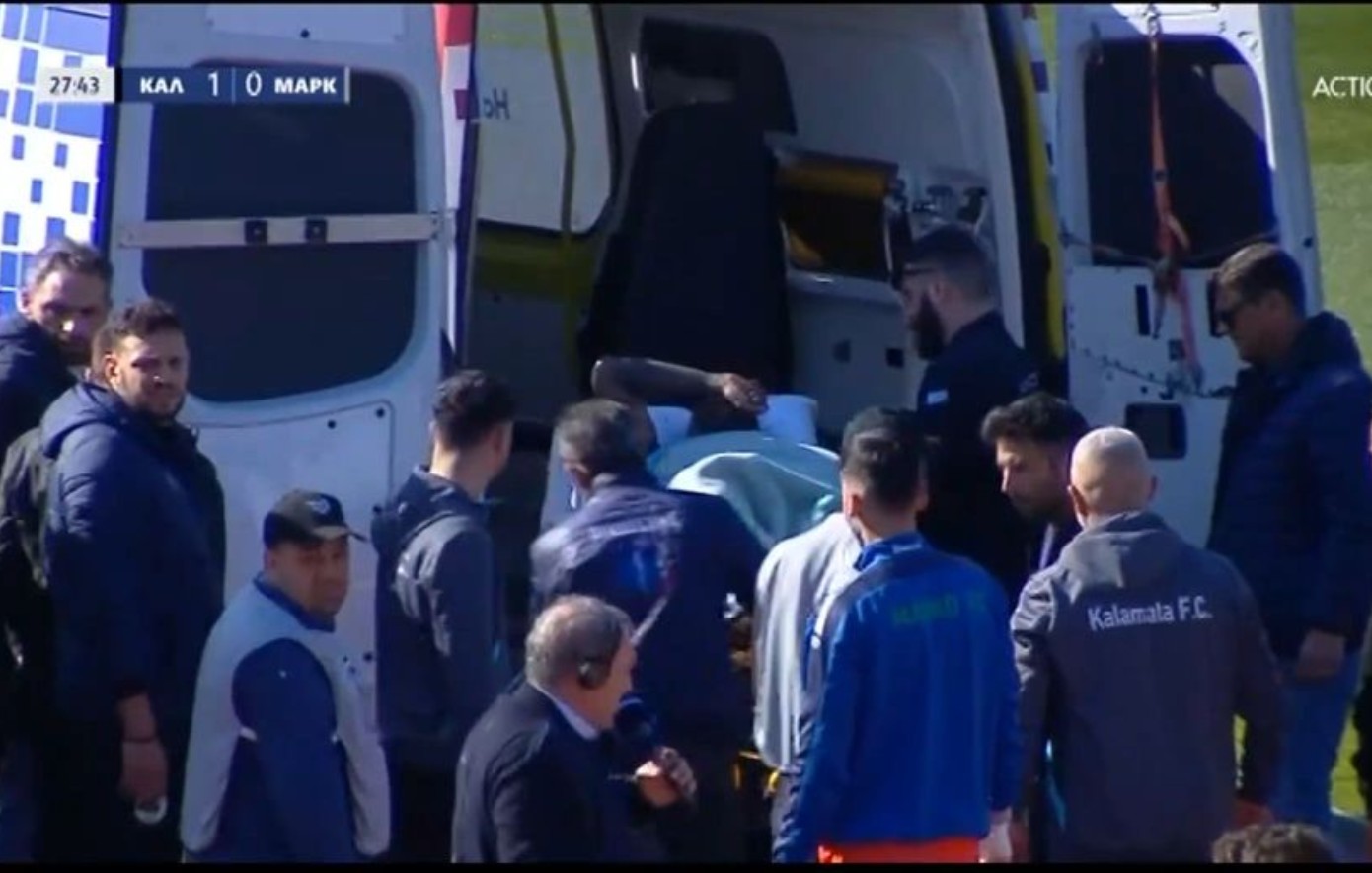 Ανησυχία επικράτησε στον αγώνα της Καλαμάτας με τη Μαρκό για τα play off της Super League 2, καθώς ο Σεμπά έπεσε στο έδαφος και αποχώρησε με φορείο, έχοντας δακρύσει.