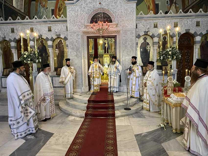Στο κήρυγμα του ο Τοποτηρητής Σεβ. Μητροπολίτης κ. Ιερώνυμος, ανέλυσε την Ευαγγελική περικοπή της Κυριακής, ενώ δεν παρέλειψε να αναφερθεί στην εκδημία του Σεβ. Ποιμενάρχου κυρού Διονυσίου του Δ’ επισημαίνοντας ότι κατακλυζόμαστε από το αίσθημα της χαρμολύπης, καθώς χαιρόμαστε μεν γιατί έχουμε ακόμη έναν «μεσίτη» στον ουρανό να πρεσβεύει για όλους εμάς αλλά και αισθανόμαστε δε την κατά άνθρωπο λύπη για την απώλεια του πολυσεβάστου και πολυαγαπημένου Πατρός και Ποιμενάρχου κυρού Διονυσίου.