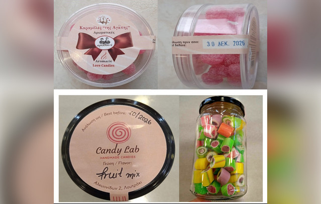 - Καραμέλες «fruit mix» με ημερομηνία ανάλωσης έως 10/2026, συσκευασίας καθαρού βάρους περίπου 230 γρ., το οποίο παράγεται και συσκευάζεται στην Ελλάδα από την «Candy Lab» που εδρεύει στο Λουτράκι Κορινθίας.