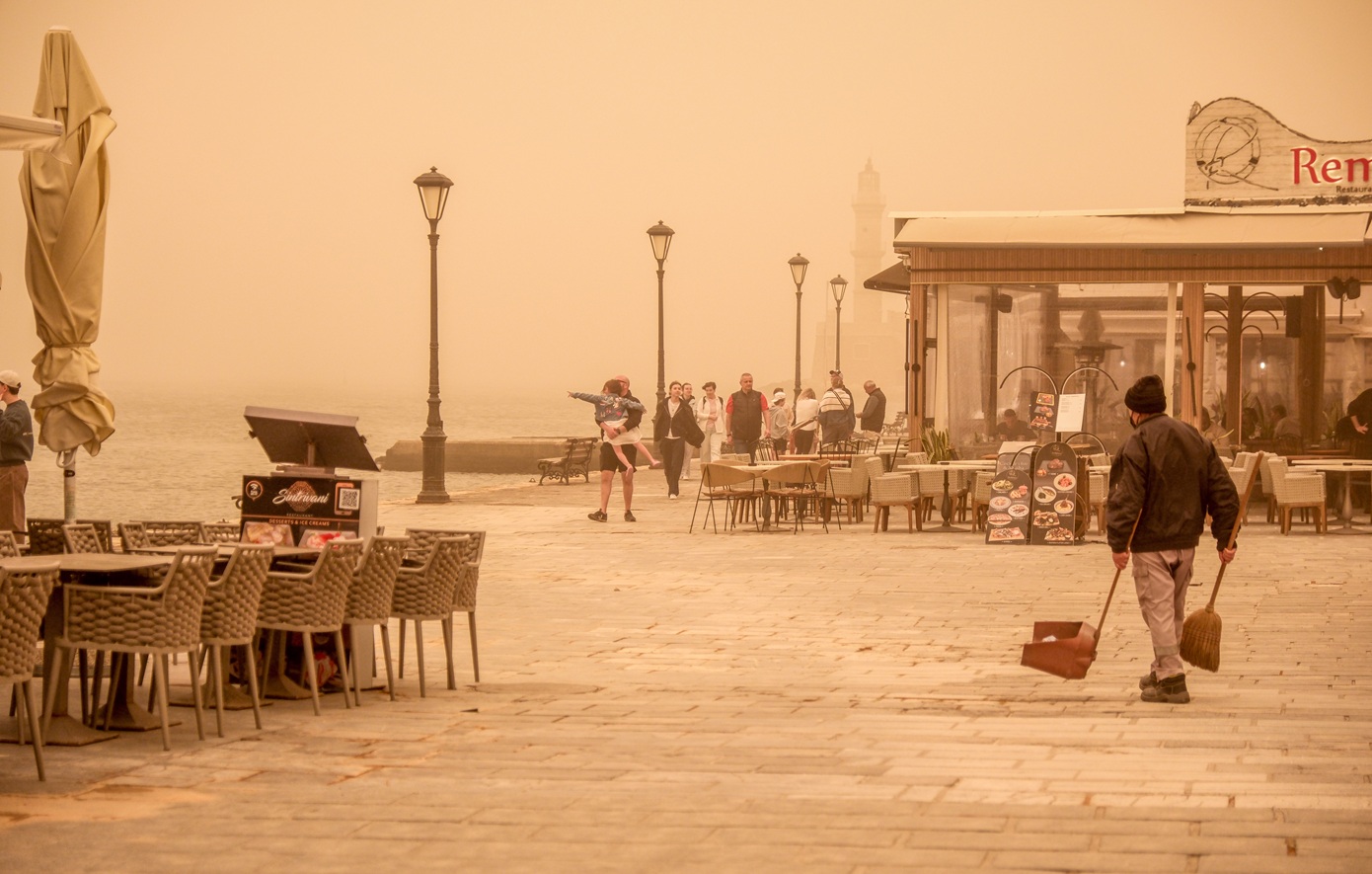 Την ίδια ώρα, η έντονη παρουσία αφρικανικής σκόνης επιβάρυνε ακόμη περισσότερο την κατάσταση, μειώνοντας αισθητά την ορατότητα και δημιουργώντας αποπνικτική ατμόσφαιρα στην περιοχή. Η σημερινή εικόνα της Παλαιοχώρας αποτυπώνει το μέγεθος της καταστροφής, με κατοίκους και επαγγελματίες να μετρούν τις πληγές τους και να ζητούν άμεση καταγραφή και αποζημίωση των ζημιών.