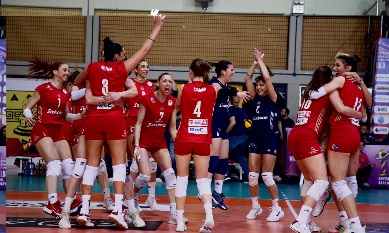 Η αγωνία κράτησε μέχρι τέλους, αλλά με περιπετειώδη τρόπο ο Ολυμπιακός πήρε το πρώτο ματς πόιντ του και πανηγύρισε το τρόπαιο.