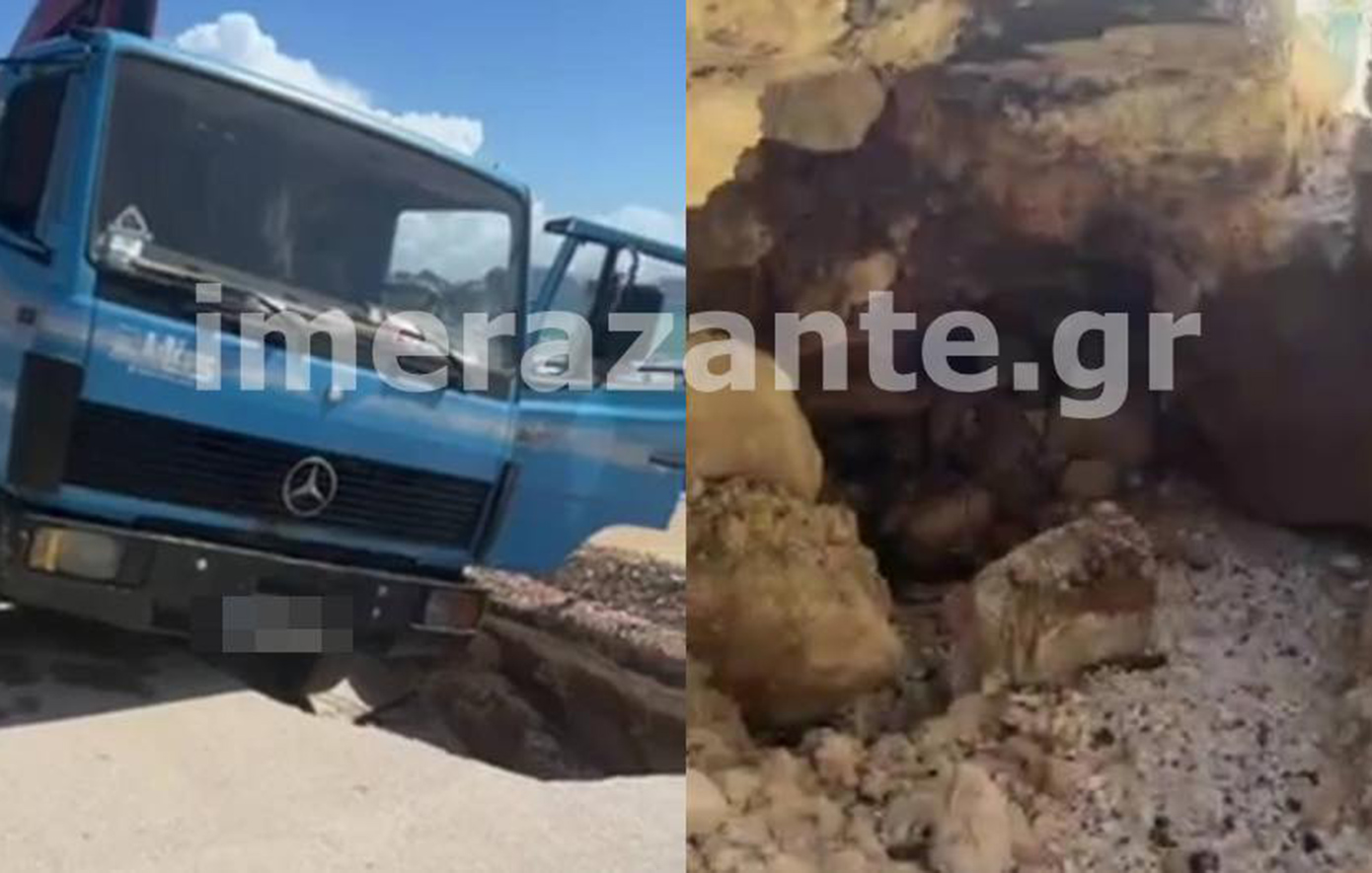 Ένα απρόσμενο ατύχημα σημειώθηκε στον δρόμο προς την παραλία του Αγίου Σώστη στη Ζάκυνθο, όταν ένα φορτηγό παγιδεύτηκε στην άσφαλτο λόγω ξαφνικής καθίζησης του οδοστρώματος. Ευτυχώς, ο οδηγός δεν τραυματίστηκε, ενώ το όχημα απεγκλωβίστηκε με τη βοήθεια εκσκαφέα χωρίς να υποστεί σοβαρές ζημιές.
