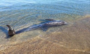 Τα δύο σταχτοδέλφινα ξεβράστηκαν στην ακτή, ενώ ένα ακόμη παρατηρήθηκε να κολυμπά κοντά στην περιοχή