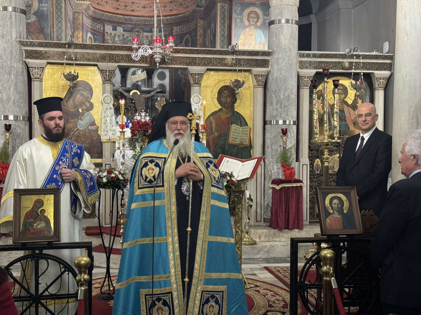 Έτσι, κατόπιν αδείας του Μακαριωτάτου Αρχιεπισκόπου Αθηνών και πάσης Ελλάδος, κ.κ. Ιερωνύμου, μετέβη στον Ιερό Ναό Μεταμορφώσεως του Σωτήρος Πλάκας, στο κέντρο των Αθηνών, όπου χοροστάτησε κατά την Ακολουθία των Α΄ Χαιρετισμών της Υπεραγίας Θεοτόκου. Προϊστάμενος του ως άνω Ιερού Ναού είναι ο Αρχιμανδρίτης π. Ισίδωρος, Καθηγητής της Θεολογικής Σχολής του Πανεπιστημίου Αθηνών ενώ στην Ιερά Ακολουθία παρέστησαν, μεταξύ άλλων, οι πρόεδροι των Κερκυραϊκών Σωματείων της Αθήνας, καθώς και ο Υπουργός Εθνικής Άμυνας κ. Νικόλαος Δένδιας, καταγόμενος εκ Κερκύρας.