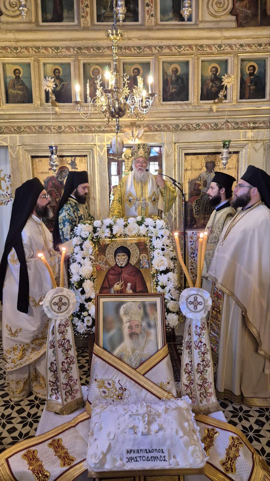 Τέλος, ευχήθηκε χρόνια πολλά στον π. Χριστόδουλο καθώς και σε όλους τους εορτάζοντας, ενώ ευχήθηκε πατρικά ώστε η χάρις του Θεού να τούς οδηγεί στο δρόμο της αρετής, της γνησιότητος και της αλήθειας.