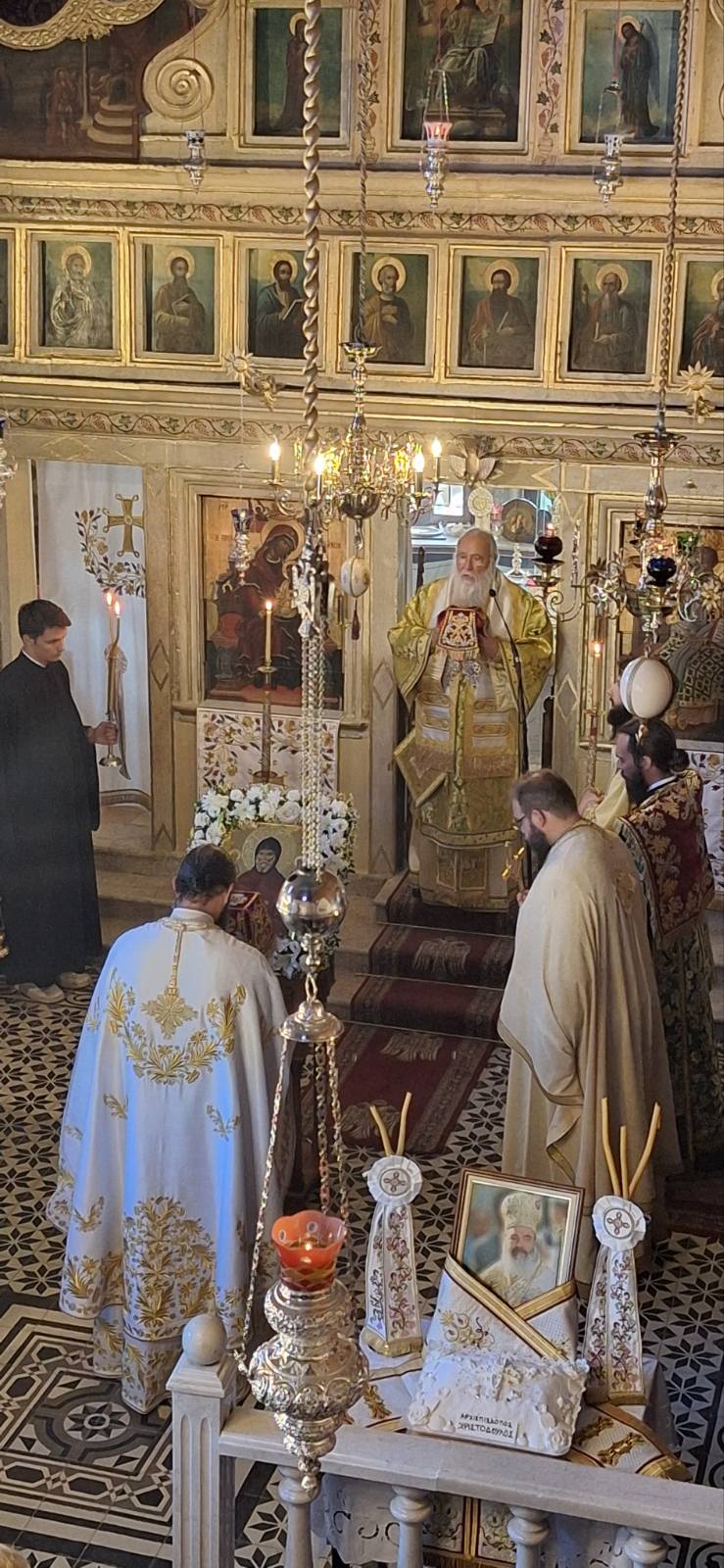 Εν συνεχεία, στο τέλος της Θείας Λειτουργίας ο Σεβασμιώτατος τέλεσε μνημόσυνο για τον μακαριστό Αρχιεπίσκοπο Αθηνών και πάσης Ελλάδος, κ. Χριστόδουλο ο οποίος ήγε και αυτός τα ονομαστήριά του την εν λόγω ημέρα και ήταν πάντοτε δίπλα στη νεότητα και στα παιδιά ως εμπνευστής και πνευματικός οδηγός. Τέτοιοι φωτοφόροι οδηγοί για την νεολαία με γνήσια αγάπη για την πατρίδα, σπανίζουν στις μέρες μας, ενώ είναι πιο απαραίτητοι από ποτέ καθώς, σήμερα, τα ρεύματα της εποχής αποπροσανατολίζουν του νέους και προκαλούν αναστάτωση λόγω της ανεξέλεγκτης τεχνολογικής εξέλιξης. Επίσης, παρατηρούνται φαινόμενα επιθετικότητας στους νέους, καθώς δεν έχει μορφωθεί στις καρδιές τους ο Χριστός, ο οποίος γεννά εντός μας την ειρήνη, την αγάπη και τη μακροθυμία.