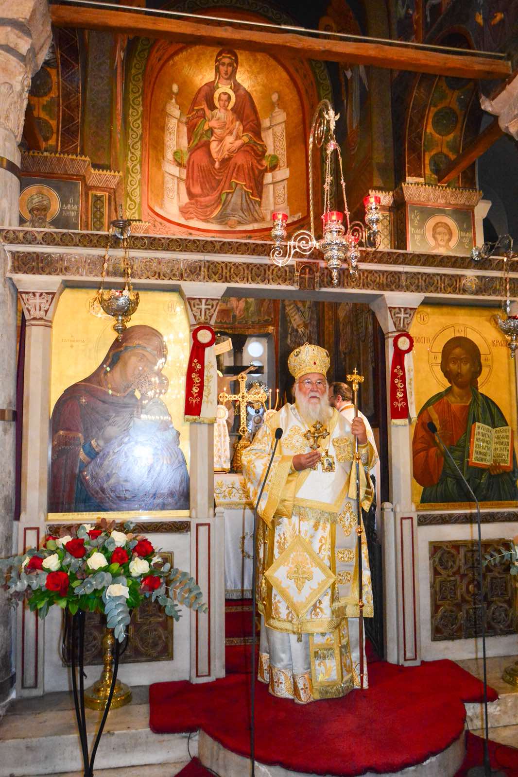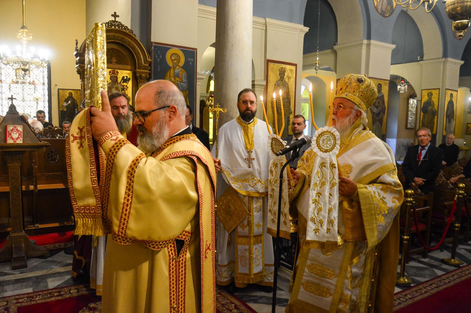 Στον ως άνω Ιερό Ναό εκκλησιάζονται οι εν Αθήναις Κερκυραίοι και Παξινοί. Προϊστάμενος του Ιερού Ναού είναι ο Πανοσιολογιώτατος Αρχιμανδρίτης π. Ισίδωρος Κάτσος, καθηγητής του Εθνικού και Καποδιστριακού Πανεπιστημίου Αθηνών. Μαζί με τον Σεβασμιώτατο συλλειτούργησαν ο Αιδεσιμολογιώτατος π. Aθανάσιος Μελισσάρης, επίσης καθηγητής του ΕΚΠΑ, καθώς και ο εφημέριος του Ναού π. Κωνσταντίνος. Ακόμη, συμμετείχαν και οι πρόεδροι των Κερκυραϊκών Σωματείων, καθώς καὶ του Σωματείου των Κοζανιτών.
