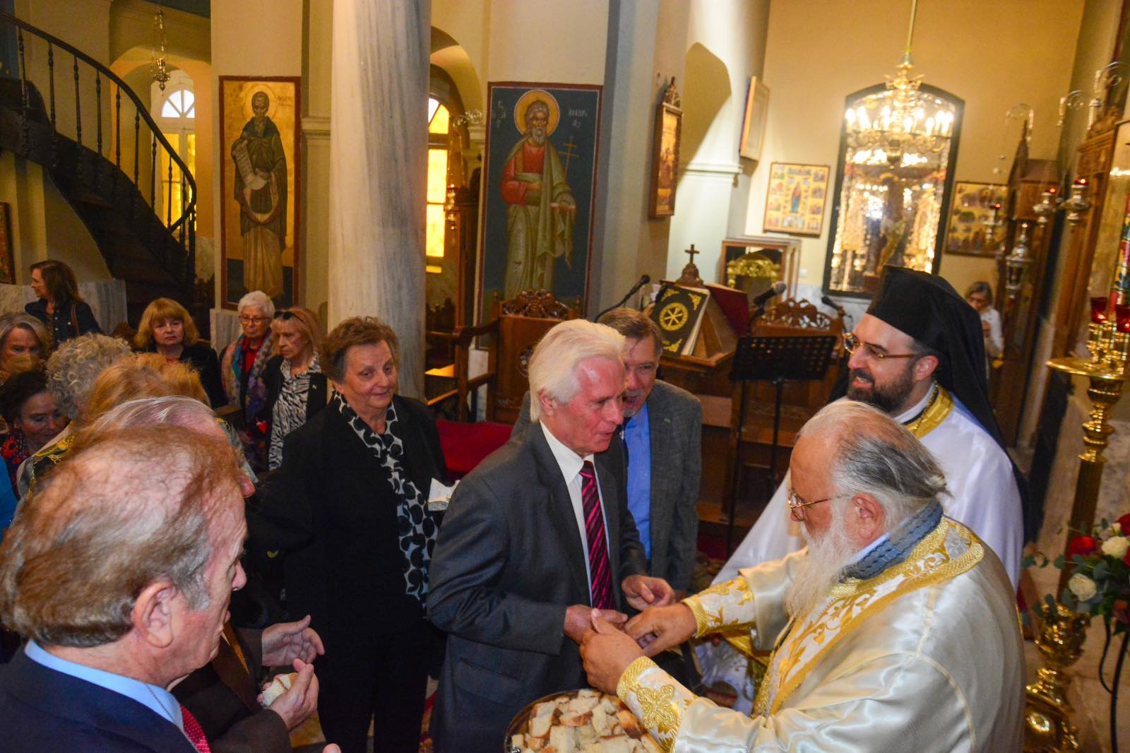 Στο τέλος, ο κ. Νεκτάριος εξέφρασε τη χαρά του που λειτούργησε και συνευρέθηκε με τους εν Αθήναις Κερκυραίους ενώ ευχήθηκε να τούς συνοδεύουν πάντοτε οι πρεσβείες του Αγίου Σπυρίδωνος.