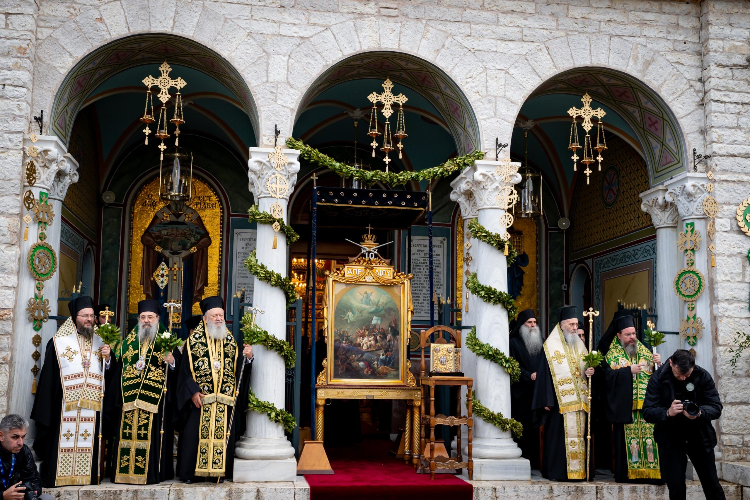 Χοροστάτησε ο Σεβασμιώτατος Μητροπολίτης Πατρών κ. Χρυσόστομος, Μέλος της Διαρκούς Ιεράς Συνόδου της Εκκλησίας της Ελλάδος και συγχοροστάτησαν οι Σεβασμιώτατοι Μητροπολίτες Χαλκίδος κ. Χρυσόστομος, Αντιπρόεδρος της Διαρκούς Ιεράς Συνόδου, Πολυανής και Κιλκισίου κ. Βαρθολομαίος, Μέλος της Διαρκούς Ιεράς Συνόδου και οι Σεβασμιώτατοι Μητροπολίτες Ναυπάκτου και Αγίου Βλασίου κ. Ιερόθεος και Αιτωλίας και Ακαρνανίας κ. Δαμασκηνός.