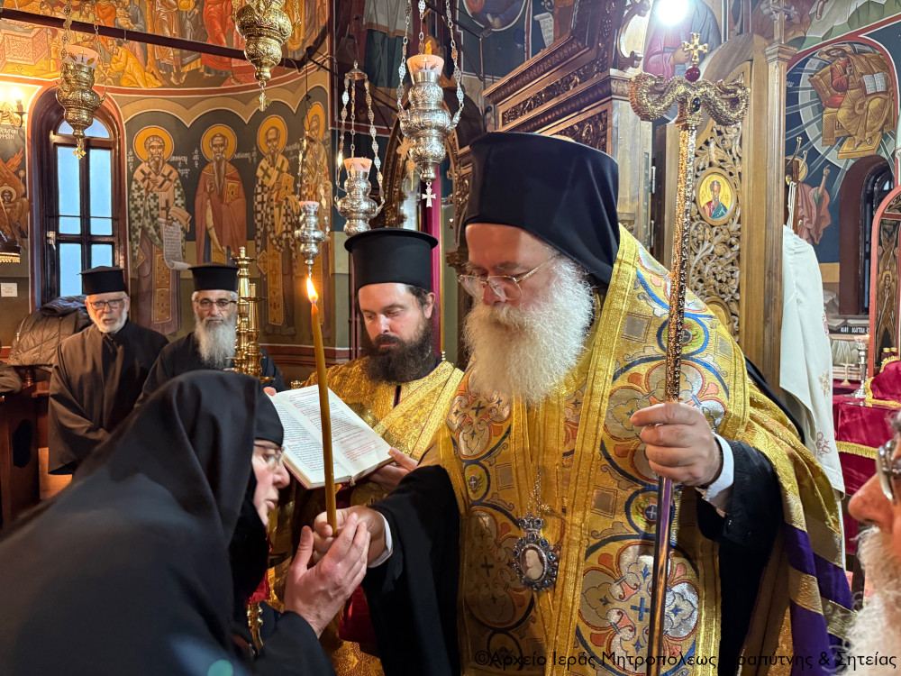 Στην ομιλία του ο Σεβασμιώτατος κ. Κύριλλος με απλό λόγο και γλαφυρότητα σημείωσε ότι με τη Χάρη της Υπεραγίας Θεοτόκου, της επονομαζομένης «το Άξιόν Εστί», στην Αδελφότητα της ιεράς αυτής μάνδρας, που αποτελεί ένα φάρο προσευχής και μοναχικού βίου, προστίθεται μια νέα μοναχή λαμβάνοντας το Μικρό Αγγελικό Σχήμα, το οποίο είναι αρραβώνας του Μεγάλου και Αγγελικού Σχήματος, ύστερα από την προβλεπόμενη από τους κανόνες δοκιμασία της.