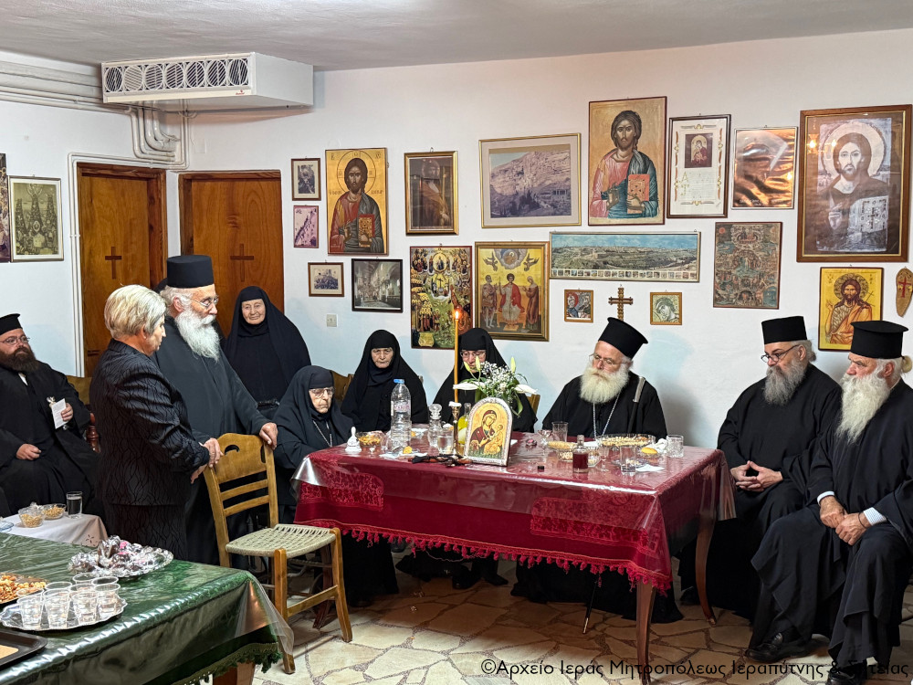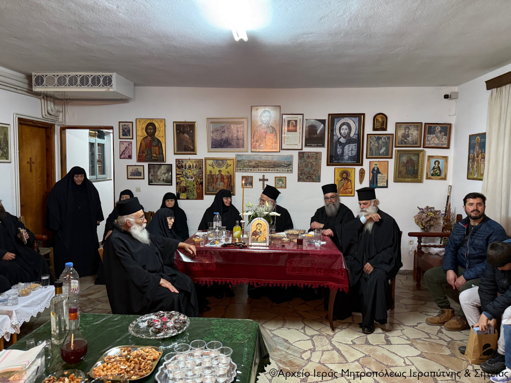 Τον Σεβ. Μητροπολίτη κ. Κύριλλο προσφώνησε κατάλληλα ο Ηγούμενος της Ι. Μονής Καψά και Πνευματικός του Ι. Ησυχαστηρίου Παν/τος Αρχιμ. Μεθόδιος Περράκης, ο οποίος τόνισε την πατρική αγάπη και το ανύστακτο ενδιαφέρον του Σεβασμιωτάτου προς όλες τις Μοναχικές Αδελφότητες της Μητροπολιτικής περιφέρειας και του ευχήθηκε υγεία, δύναμη και μακροημέρευση στην ποιμαντορία του στη λαχούσα σε αυτόν Ιερά Μητρόπολη Ιεραπύτνης και Σητείας.