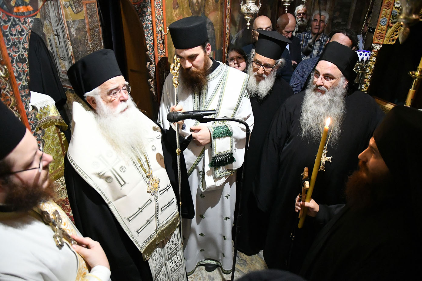 Στην προσφώνησή του ο Σεβ. Ποιμενάρχης κ. Ιγνάτιος τόνισε πως «τα αληθινά κι αυθεντικά θαύματα είναι τα θαύματα που συντελούνται στις ψυχές των ανθρώπων και ζούμε και βιώνουμε θαύματα στη ζωή μας, έστω κι αν δεν το αντιλαμβανόμεθα στο βαθμό που θα έπρεπε. Κι απόψε κι εγώ προσωπικά ζω ένα θαύμα· με την έκπληξη του πλήθους των πιστών που έχει πλημμυρίσει το μοναστήρι μας. Δεν είναι απλό πράγμα, σ’ αυτή τη σύγχρονη εκκοσμικευμένη εποχή, οι άνθρωποι να προσεγγίζουν τα μοναστήρια. Μέσα σε αυτά τα είκοσι χρόνια, σε αυτόν εδώ τον τόπο που έχει καθαγιαστεί από τα δάκρυα των μοναχών, ζούμε ένα σύγχρονο θαύμα της τοπικής μας Εκκλησίας και της Ορθοδοξίας ταυτόχρονα· το γεγονός ότι νέοι άνθρωποι, εμπνευσμένοι και έχοντας μέσα τους από την αγάπη του Χριστού, με αληθινό θείο έρωτα, επανδρώνουν τα μοναστήρια μας και στην περίπτωση του μέχρι πρότινος Ευαγγέλου, βλέπουμε μια οικογένεια με δύο παιδιά, δύο μοναχούς — κάτι που αποτελεί σημάδι της ζωντανής πίστης και της ευλογίας του Θεού».