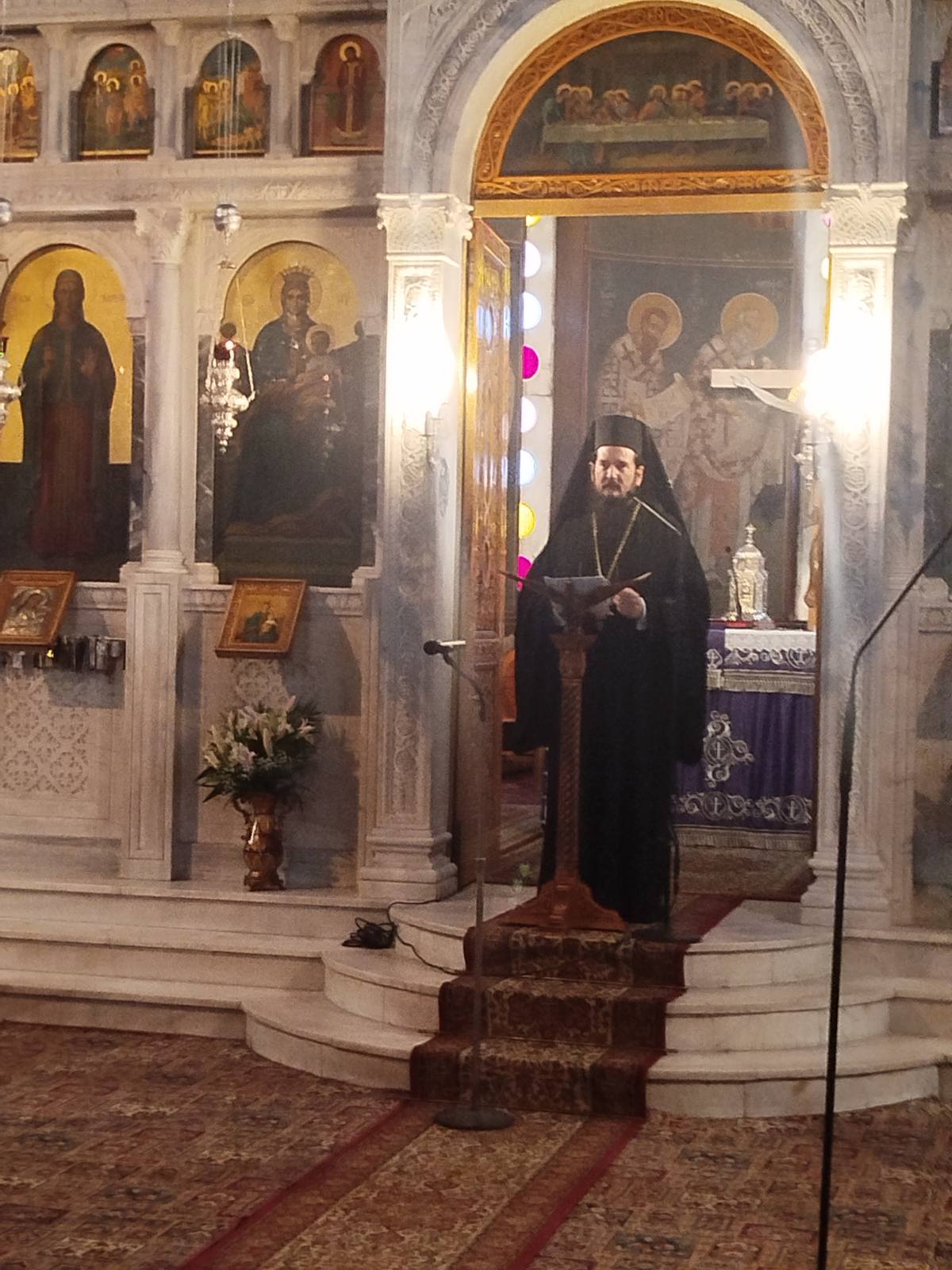 Στη συνέχεια παρέστη σε προπασχάλια μουσική εκδήλωση της Αρκαδικής Εκκλησιαστικής Χορωδίας, όπου ως κύριος ομιλητής ανέλυσε το Εξαποστειλάριον της Μεγάλης Εβδομάδος “Το νυμφώνα σου βλέπω…”.