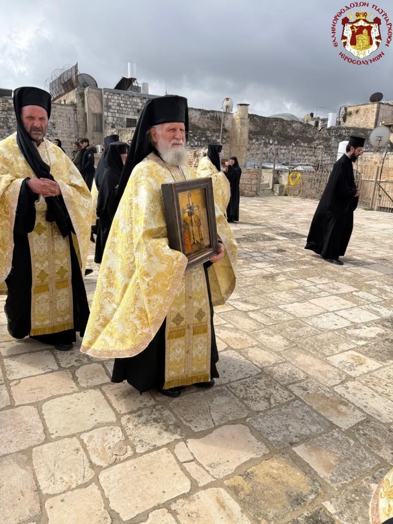 Με επίκεντρο τον ιερό μοναστηριακό ναό των Αγίων Κωνσταντίνου και Ελένης εορτάστηκε η Κυριακή της Σταυροπροσκυνήσεως στο Πατριαρχείο Ιεροσολύμων καθώς ο Πανίερος Ναός της Αναστάσεως παραμένει κλειστός για λόγους ασφαλείας εξαιτίας του συνεχιζόμενου πολέμου στη Μέση Ανατολή.