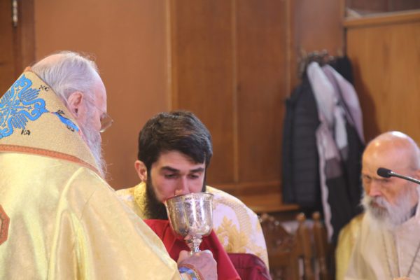 Ο Σεβασμιώτατος στην αντιφώνησή του αναφέρθηκε στους τρεις βαθμούς της Ιερωσύνης, του Διακόνου, του Πρεσβυτέρου και του Επισκόπου, και ιδιαιτέρως στο μέρος της θείας Λειτουργίας που τελείται η χειροτονία του κάθε βαθμού. Ο Διάκονος χειροτονείται μετά την μεταβολή των Τιμίων Δώρων και προ της θείας Κοινωνίας, διότι έργο του Διακόνου είναι να κοινωνεί τους πιστούς. Ο Πρεσβύτερος χειροτονείται μετά την Μεγάλη Είσοδο και πριν την ευχή της Αναφοράς, διότι έργο του είναι η τέλεση της θείας Λειτουργίας. Ο Επίσκοπος χειροτονείται προ του Ευαγγελίου, ώστε να κάνει και όλα τα προηγούμενα, αλλά και να κηρύξει τον θείο λόγο, που σημαίνει ότι είναι ο πραγματικός διδάσκαλος της Εκκλησίας. Όταν λέμε ότι ο Επίσκοπος είναι διδάσκαλος, εννοούμε ότι μεταφέρει την διδασκαλία των Αποστόλων, οι οποίοι μυήθηκαν στα της θεολογίας από τον Χριστό και το Άγιο Πνεύμα, αλλά και την διδασκαλία των Πατέρων των Οικουμενικών Συνόδων, οι οποίοι είναι διάδοχοι των Αποστόλων και πορεύονται «κατά τας θεοπνεύστους θεολογίας των αγίων και το της Εκκλησίας ευσεβές φρόνημα». Αυτή η διδασκαλία είναι η θεραπεία, κατά τον άγιο Συμεών τον Νέο Θεολόγο, είναι η μέθεξη του μυστηρίου του Σταυρού και της Αναστάσεως του Χριστού.