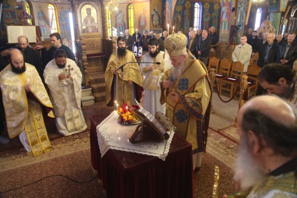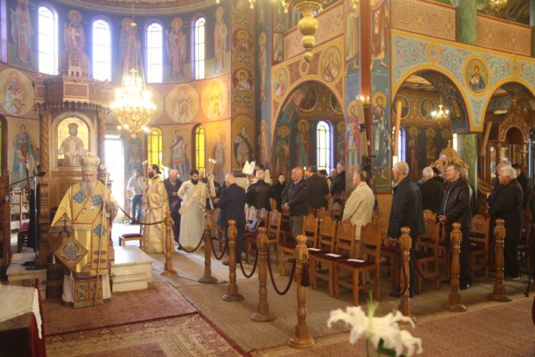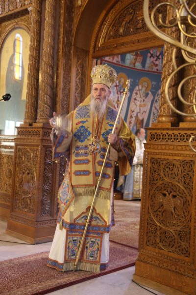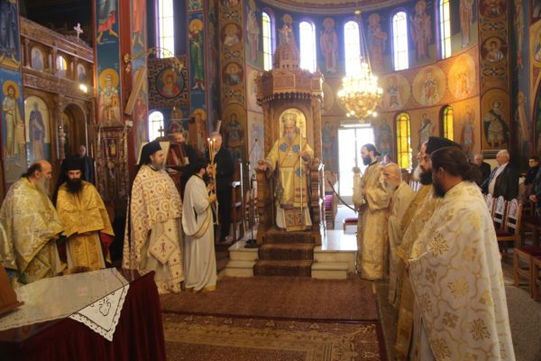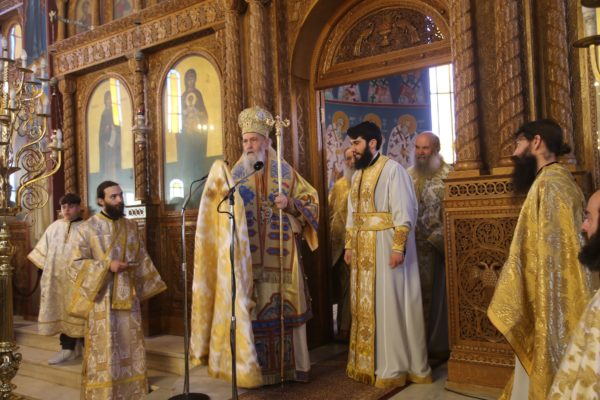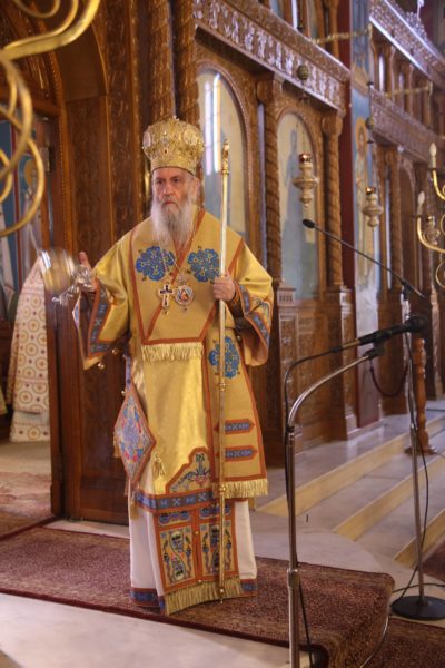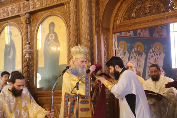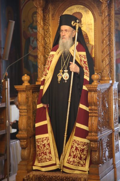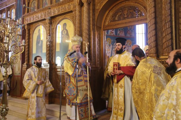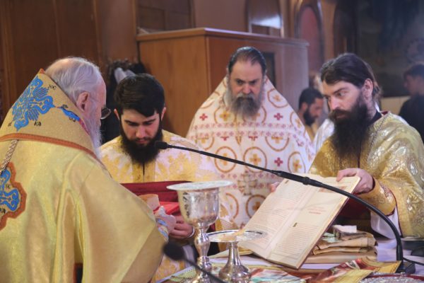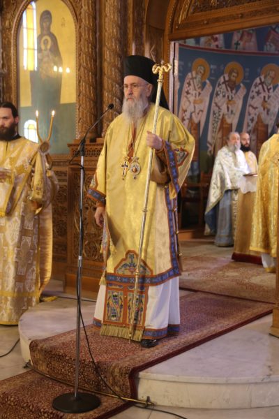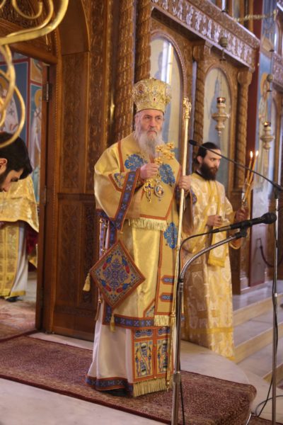 Ο Σεβασμιώτατος στην αντιφώνησή του αναφέρθηκε στους τρεις βαθμούς της Ιερωσύνης, του Διακόνου, του Πρεσβυτέρου και του Επισκόπου, και ιδιαιτέρως στο μέρος της θείας Λειτουργίας που τελείται η χειροτονία του κάθε βαθμού. Ο Διάκονος χειροτονείται μετά την μεταβολή των Τιμίων Δώρων και προ της θείας Κοινωνίας, διότι έργο του Διακόνου είναι να κοινωνεί τους πιστούς. Ο Πρεσβύτερος χειροτονείται μετά την Μεγάλη Είσοδο και πριν την ευχή της Αναφοράς, διότι έργο του είναι η τέλεση της θείας Λειτουργίας. Ο Επίσκοπος χειροτονείται προ του Ευαγγελίου, ώστε να κάνει και όλα τα προηγούμενα, αλλά και να κηρύξει τον θείο λόγο, που σημαίνει ότι είναι ο πραγματικός διδάσκαλος της Εκκλησίας. Όταν λέμε ότι ο Επίσκοπος είναι διδάσκαλος, εννοούμε ότι μεταφέρει την διδασκαλία των Αποστόλων, οι οποίοι μυήθηκαν στα της θεολογίας από τον Χριστό και το Άγιο Πνεύμα, αλλά και την διδασκαλία των Πατέρων των Οικουμενικών Συνόδων, οι οποίοι είναι διάδοχοι των Αποστόλων και πορεύονται «κατά τας θεοπνεύστους θεολογίας των αγίων και το της Εκκλησίας ευσεβές φρόνημα». Αυτή η διδασκαλία είναι η θεραπεία, κατά τον άγιο Συμεών τον Νέο Θεολόγο, είναι η μέθεξη του μυστηρίου του Σταυρού και της Αναστάσεως του Χριστού.