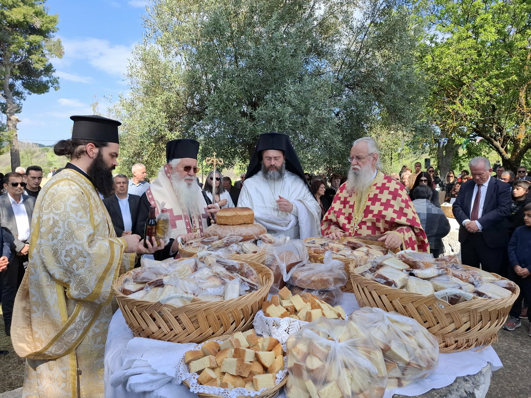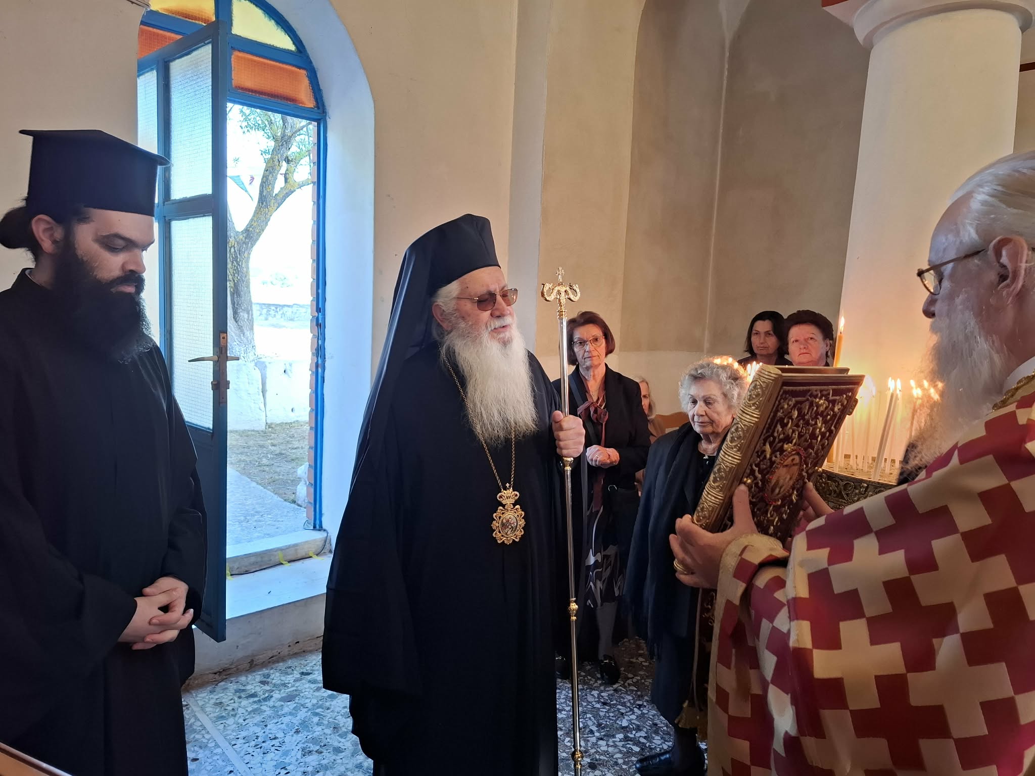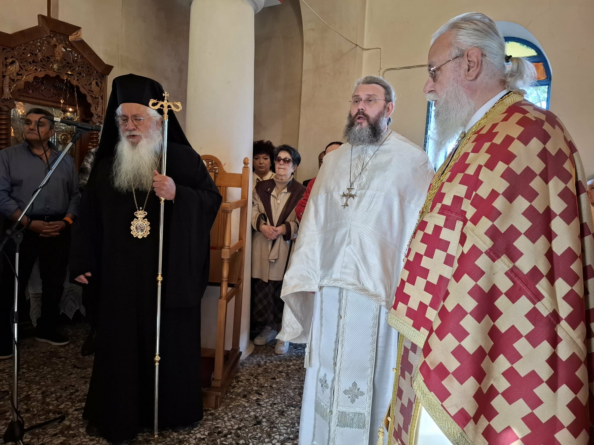 Τέλος ο Σεβασμιώτατος κ. Γεώργιος ευχήθηκε προς τους πιστούς με τις πατρικές ευχές του για την συμμετοχή τους στην λειτουργική σύναξη. Ιδιαιτέρως δε προς τον εφημέριο της ενορίας π. Γεώργιο, απηύθυνε τις εόρτιες ευχές του για επικείμενη ονομαστική εορτή του.