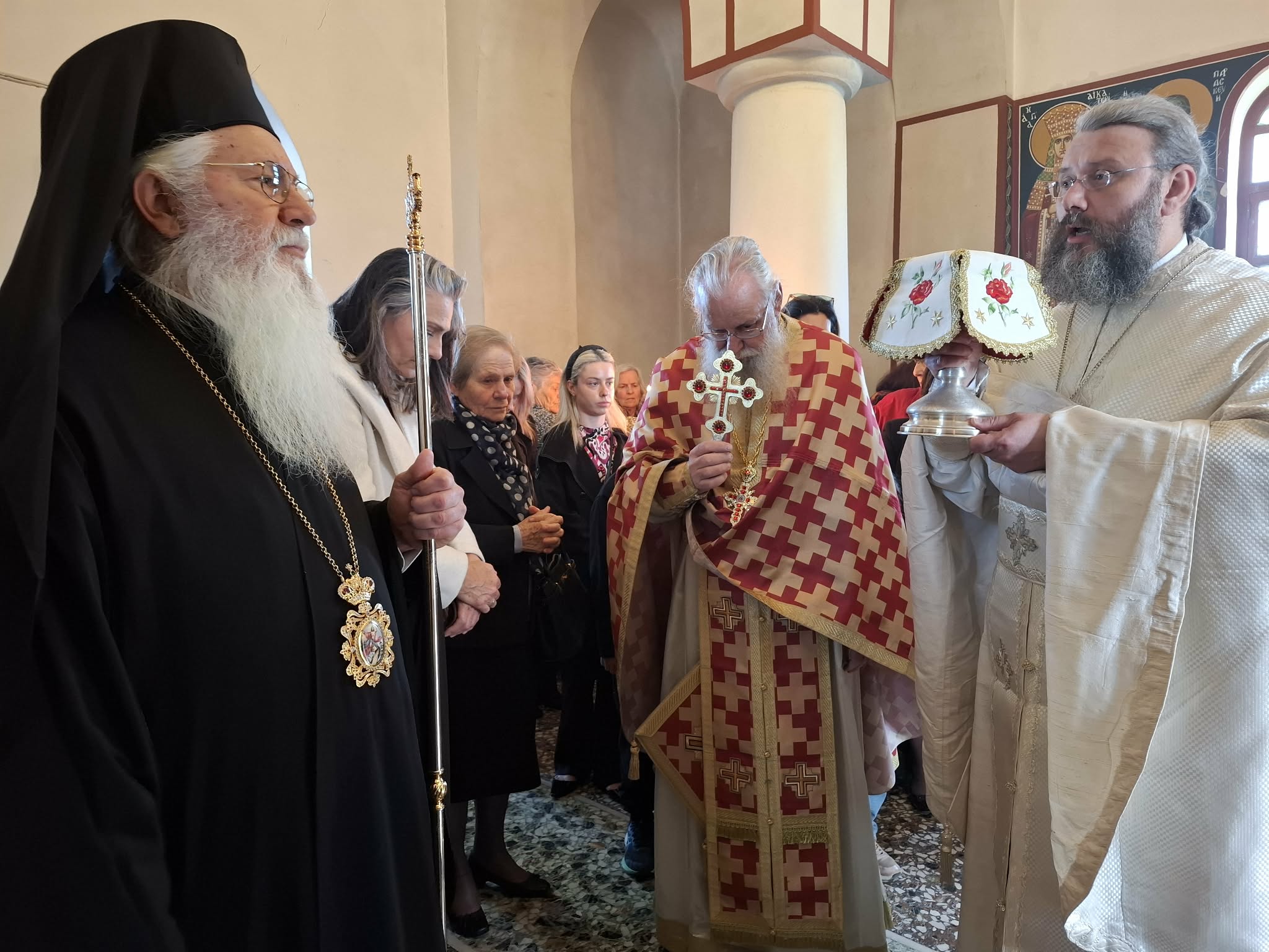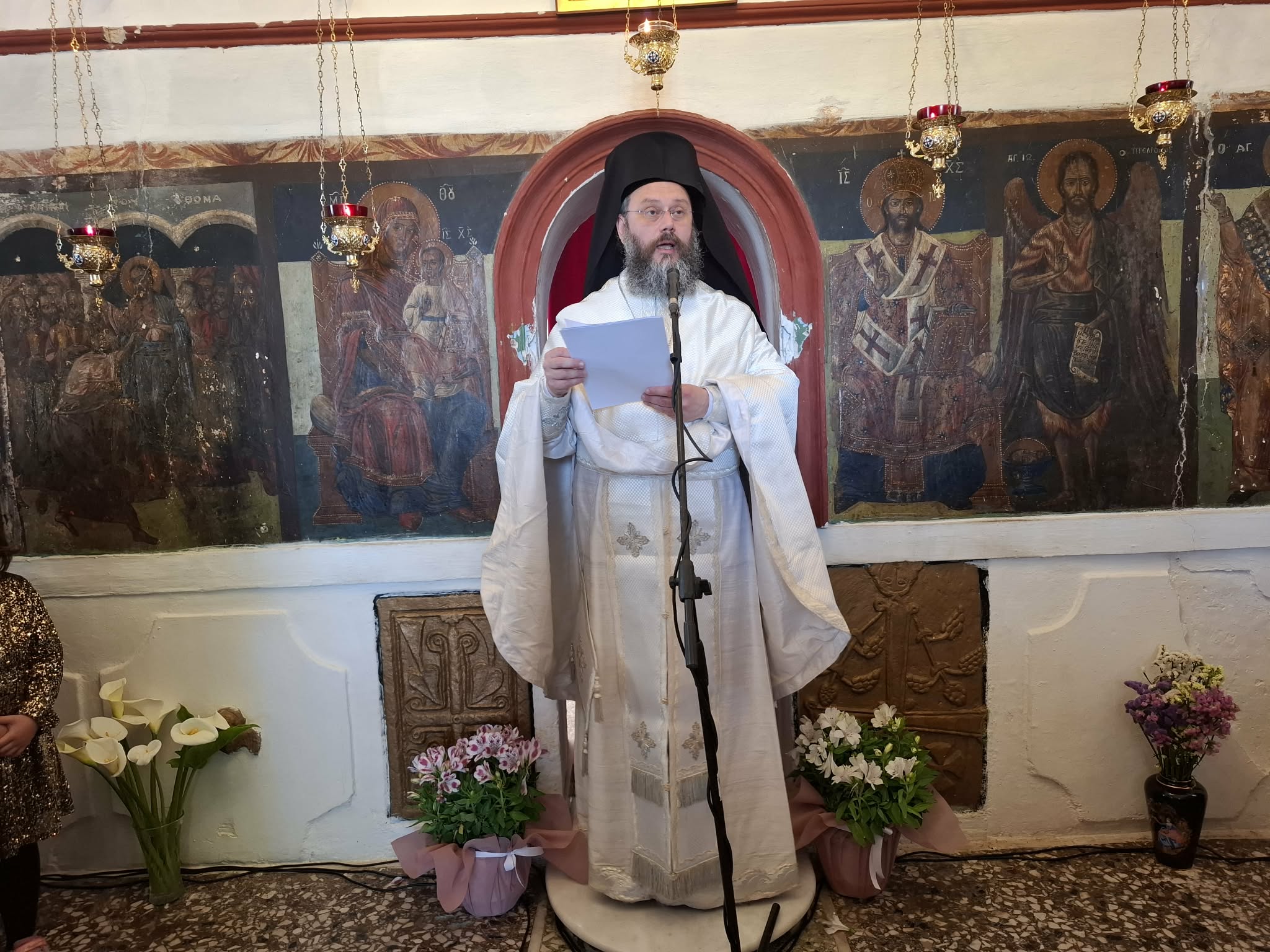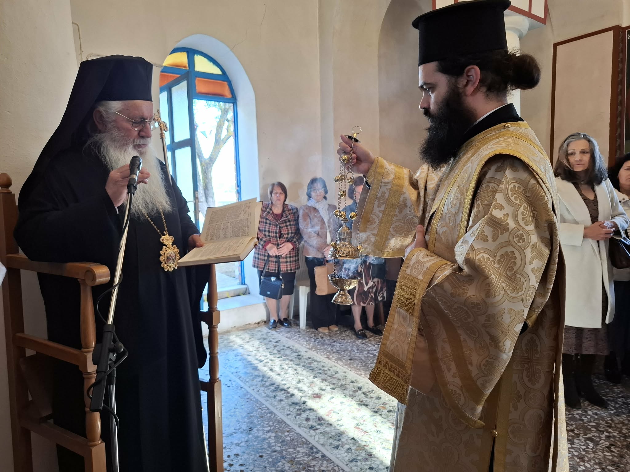 Τέλος ο Σεβασμιώτατος κ. Γεώργιος ευχήθηκε προς τους πιστούς με τις πατρικές ευχές του για την συμμετοχή τους στην λειτουργική σύναξη. Ιδιαιτέρως δε προς τον εφημέριο της ενορίας π. Γεώργιο, απηύθυνε τις εόρτιες ευχές του για επικείμενη ονομαστική εορτή του.